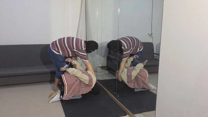 笑容甜美的然然,长相酷似一位女演员,素颜颜值也是很抗打。一身邻家学生妹打扮,被绑起来看着还是很楚楚动人的。