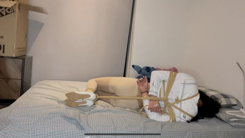 第一部分是肉丝+白色高跟,第二部分是OL+黑丝(绑的比较紧)。床上驷马放置挣扎。