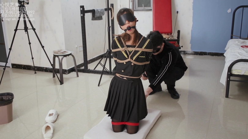 这个是小学妹苏苏试镜时候拍摄的第二部,后手缚整个身子绑在柱子上,跪在地上后面的小脚吊起来玩。