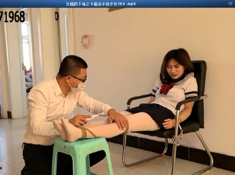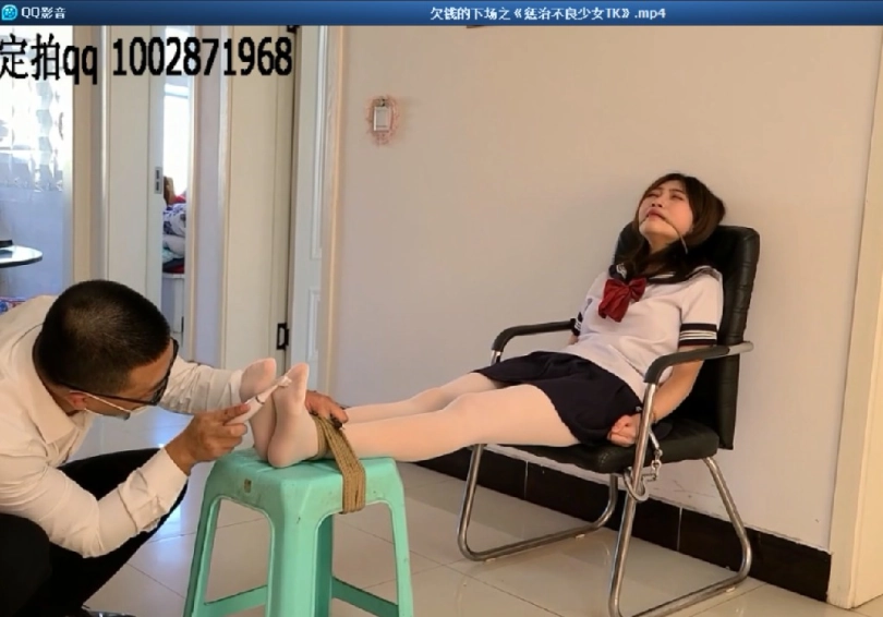 渣女晓晓没钱装“名媛”,借钱贷款也要买名牌装阔气,每天在直播间卖弄自己的A货,终于有一天债主找上门来,晓晓千万个理由就是没钱,债主无奈只好来硬的,让她用自己的美脚来抵债....顺便把她捆在老虎凳上面狠狠tk教训了一次,让她尝尝苦头长长记性!