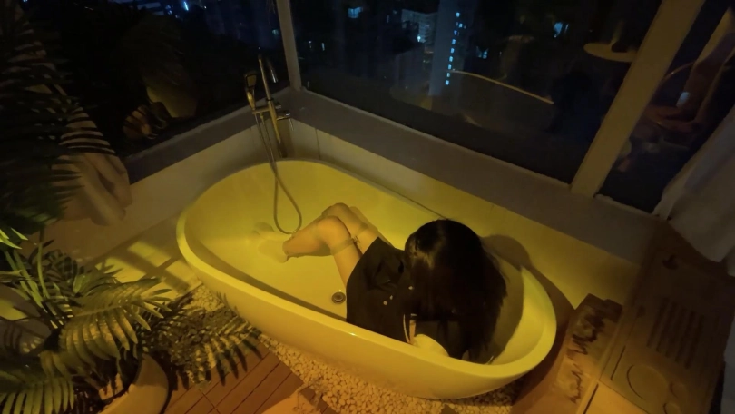 被绑着扔在浴缸里,有生以来一直没体验过浴缸泡澡,第一次进浴缸里居然是被绑着...在浴缸里真的好难伸展身体,而且真的感觉好滑,被绑在里面根本不敢站起来,我猜就算敢也很难做到,因为脚踩着的这种质地总会让我联想到一站起来就会摔倒下去,肯定会受伤的吧...所以这次怎么说,总感觉是身体和心理的双重禁锢...靠在浴缸里还是出乎意料的累,好像靠着浴缸又好像没靠...