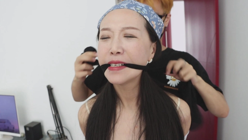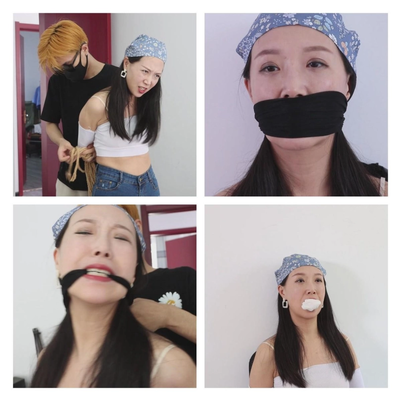 丝袜勒嘴,毛巾塞嘴,丝袜蒙嘴。