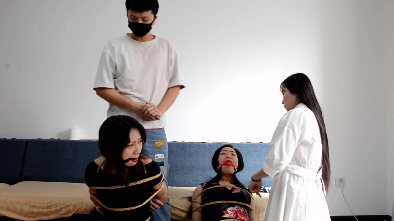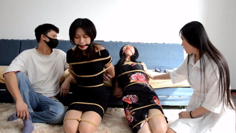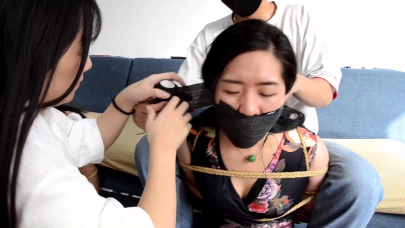 【文件大小】:1186MB 名模王蕾、王千雅和小雨出演。 看点:双女捆堵挣扎、互助解绳逃脱未遂惨遭严厉捆绑、细致塞嘴过程与胶布绷带严密封嘴特写、驷马封眼状态下扭动肉色丝袜脚挣扎 剧情:女孩(王蕾饰)和自己表姐(王千雅饰)到另一女孩(小雨饰)家里要账,小雨欠了她们不少钱一直没换,到小雨家发现她正收拾东西似乎准备出远门。 小雨表示自己和男朋友马上要离开这个城市,等男朋友回来收拾好东西,马上把欠的钱还给二女。 小雨男友回来与小雨一起进屋,但他们并不是收拾东西,而是从小雨男友带回来袋子里拿出绳索和塞口球。 情侣二人从卧室出来回到客厅,王蕾和王千雅还以为他们这么快收拾完东西,要还钱了,没想到被他们扑倒袭击结结实实捆绑起来,嘴里带上塞口球。 小雨说送姐妹二人点礼物,拽出姐妹二人口中塞口球后,与男友配合分别把两条丝巾塞入姐妹二人口中,而后与男友到卧室收拾东西准备跑路。 王蕾和王千雅姐妹二人呜呜闷哼挣扎着,试图背靠解绳,可忙活半天笨手笨脚并没有什么用,反而让收拾好东西从屋里出来的小雨和她男友看到。 情侣二人说要好好惩罚一下姐妹二人,小雨说既然她们借了自己这么多钱,不如给她们留个纪念,于是小雨和自己男友当着姐妹二人的面分别脱掉腿上穿的一条肉色连裤丝袜和脚上穿的一双深蓝色锦纶丝袜。 小雨拽出王千雅口中丝巾,把男友穿了好几天没洗的这双原味臭锦纶丝袜塞入王千雅口中,令王千雅恶心屈辱想吐,只能呜呜闷哼着;之后小雨如法炮制,把自己穿了好几天没洗的原味脏肉色连裤丝袜一点点塞入王蕾口中,同样令王蕾苦不堪言。 小雨和男友接着将姐妹二人嘴外封上5张黑色电工胶布,再用黑色胶带和黑色弹力自粘绷带一圈圈缠绕封严实。 姐妹愤怒瞪向小雨和她男友,小雨一看心说你们还不服,和男友将二女捆成驷马,接着拿手机给她们拍照,还故意拿给她们看加以羞辱,二女拼命挣扎呜呜闷哼瞪向小雨。 小雨气的和男友拿黑色胶带和黑色自粘绷带将姐妹二人封眼(注:这里模特王蕾因为个人原因只用了自粘绷带封眼),而后情侣二人推着行李箱离开了。 王蕾王千雅姐妹二人剧烈扭动身体挣扎着,可不管怎么努力都是徒劳,最终二人索性躺平,寄希望于被他人发现救援解放她们。 ![]() ![]() ![]() ![]() ![]() ![]() ![]() ![]() ![]() ![]() ![]() ![]() ![]() ![]() ![]() ![]() ![]() ![]() ![]() ![]() ![]() ![]() ![]() ![]() ![]() ![]() ![]() ![]() ![]() ![]() ![]() ![]() ![]() ![]() ![]() ![]() ![]() ![]() ![]() ![]() ![]() ![]()