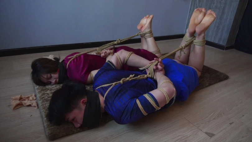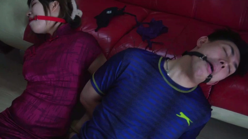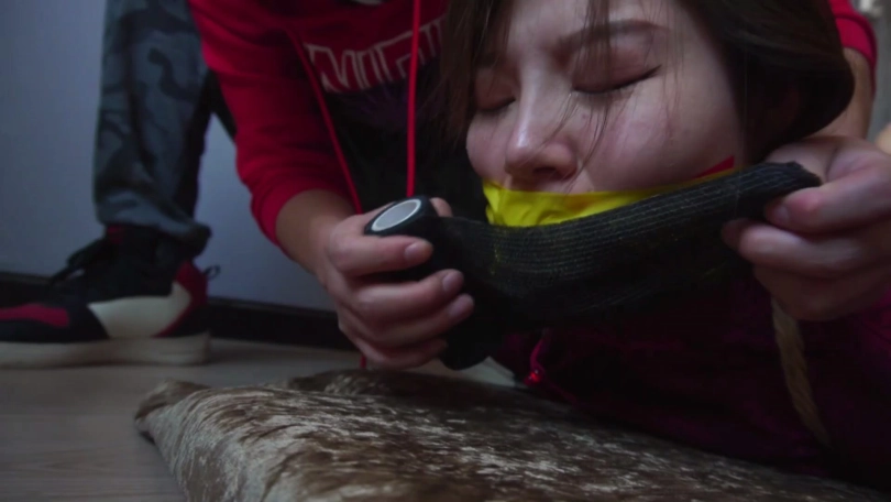 【文件大小】:1076MB 情侣二人在家被歹人打劫捆绑,劫匪分别拿两条内裤塞入二人口中,好在二人捆绳较少,一番互助解绳后挣脱束缚,但是想跑时被劫匪发现。 劫匪将男女情侣二人上身五花大绑,双腿脚踝并拢捆绑多道,并在此基础上将二人驷马捆绑放置,分别扒掉二人脚上穿的一双肉色锦纶丝袜和深蓝色锦纶丝袜交换塞入二人口中,令情侣二人苦不堪言,接着,劫匪用红色胶带、黄色胶带、黑色自粘绷带缠绕封嘴,令情侣二人只能发出微弱沉闷的呜呜声。 劫匪给二人拍了几张照片,还故意拿给他们看加以羞辱,愤怒的情侣二人瞪向劫匪,劫匪遂用黄色胶带和黑色自粘绷带缠绕封眼,为了报复女模特小琛还恶作剧般去挠她的脚面,令她不断愤怒地发出呜呜呜闷哼声。 劫匪带着抢来财物离开,留下康行小琛男女情侣二人在黑暗中扭动身体无助挣扎着。 ![]() ![]() ![]() ![]() ![]() ![]() ![]() ![]() ![]() ![]() ![]() ![]() ![]() ![]() ![]() ![]() ![]() ![]() ![]() ![]() ![]() ![]() ![]() ![]() ![]() ![]() ![]() ![]() ![]() ![]() ![]() ![]() ![]() ![]() ![]() ![]() ![]()