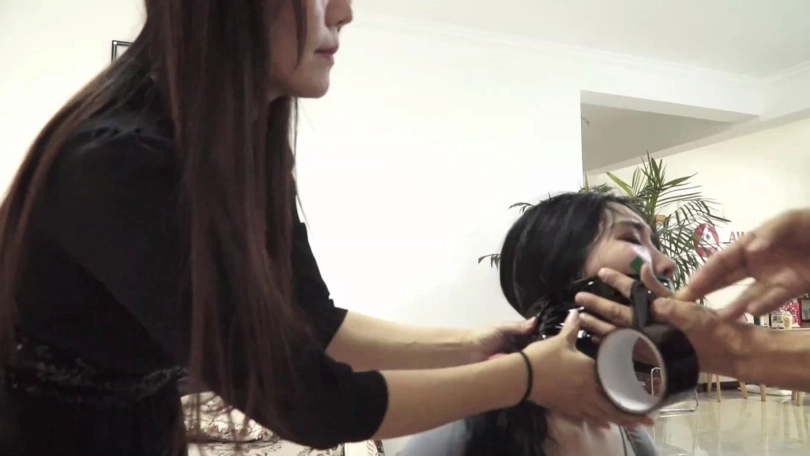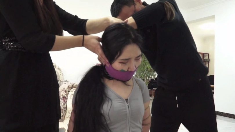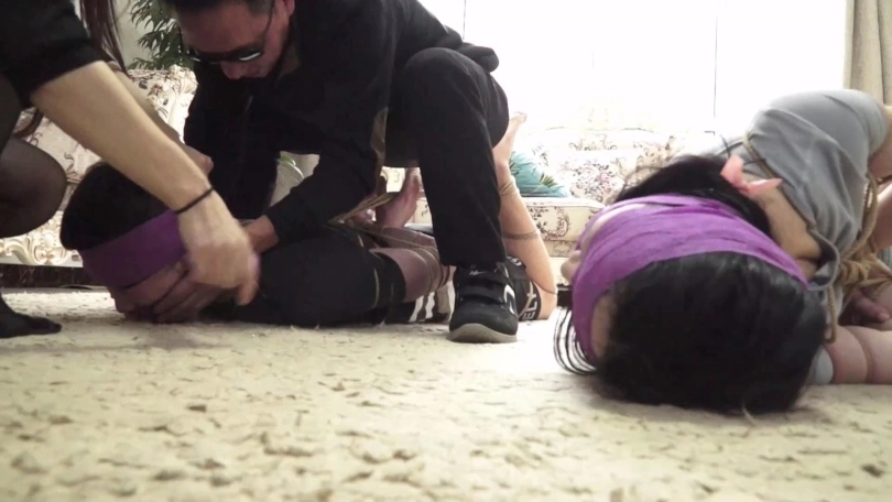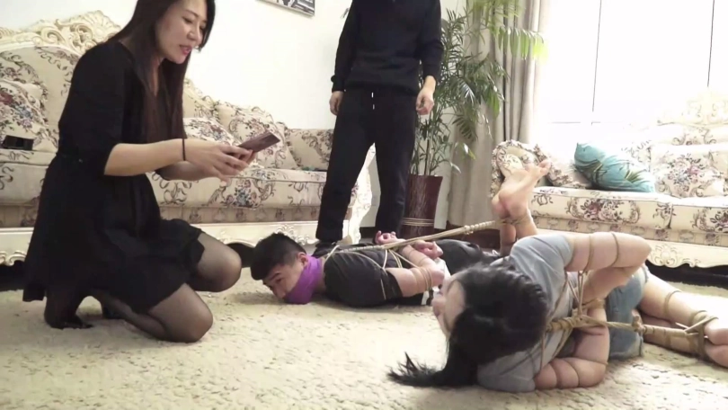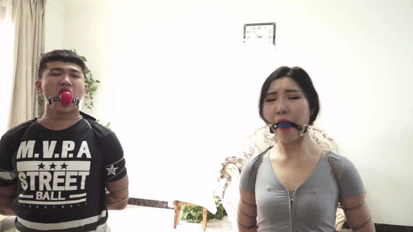 【视频时长】:00:29:43 【文件大小】:954MB 著名女模特吴晗与李然出演。 吴晗与男友(年轻男演员饰演,已离职)在被劫匪入室抢劫迷晕捆堵后,从昏迷中醒来,经过一番互助解绳总算挣脱开,撕掉封嘴黑胶带,分别取出口中的肉色短丝袜和白棉袜丢掉。情侣二人想出去报警,没想到打开门却遇到回来了的劫匪——李然和其丈夫(男演员锁哥饰演)。 两个劫匪将情侣二人重新五花大绑严厉捆绑结实,给他们带上塞口球,欣赏他们挣扎的样子,原来李然和锁哥有东西忘在吴晗家,回来正好将挣脱的情侣二人重新捆结实。 李然和丈夫锁哥提议给吴晗和她男友留个纪念,于是这对雌雄大盗当着情侣二人的面分别脱掉腿上穿的一条黑色连裤丝袜和一双灰色锦纶丝袜,分别将锁哥的锦纶丝袜塞入吴晗口中,将李然的原味黑色裤袜塞入吴晗男友口中,令情侣苦不堪言。 随后李然和锁哥拿绿色细胶带分别在吴晗和她男友嘴外缠绕,再用黑色宽胶带和紫色弹力自粘绷带缠绕多圈封严实,最后更是将他们捆成驷马。 李然恶作剧般拿手机给情侣二人拍照,还分别拿给他们看进行羞辱,愤怒的吴晗瞪向李然,李然一看,干脆和丈夫锁哥拿黑色胶带和紫色绷带将情侣二人眼睛也缠绕结实,带着抢来的财物笑着离开了。 情侣二人扭动身体在黑暗中呜呜拼命挣扎着,可怎么挣扎都是无济于事,最终只能减小挣扎幅度低头喘息着,等待他人救援。 ![]() ![]() ![]() ![]() ![]() ![]() ![]() ![]() ![]() ![]() ![]() ![]() ![]() ![]() ![]() ![]() ![]() ![]() ![]() ![]() ![]() ![]() ![]() ![]() ![]() ![]() ![]() ![]() ![]() ![]() ![]() ![]() ![]() ![]() ![]() ![]() ![]() ![]()