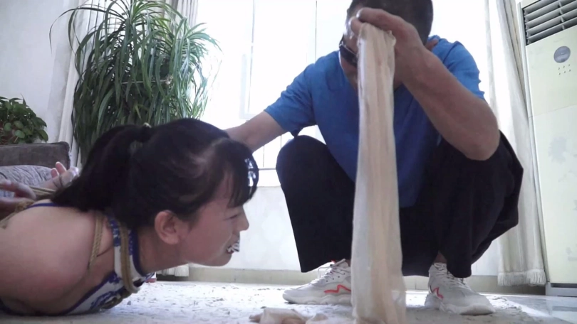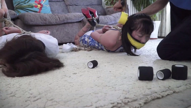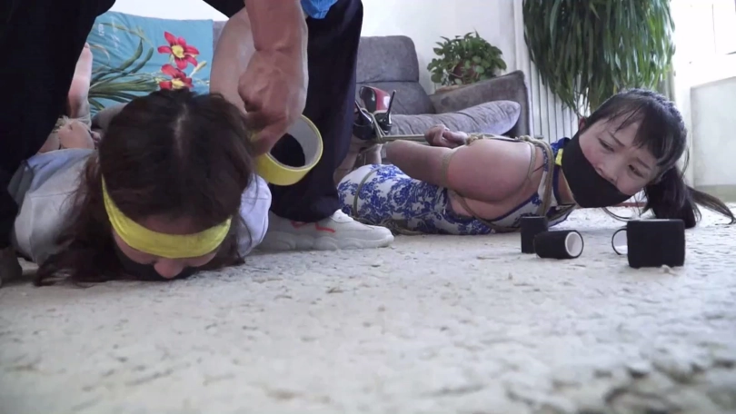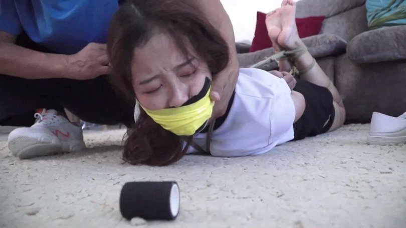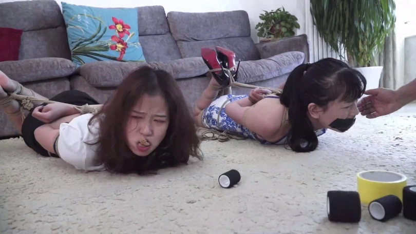 【文件大小】:905MB 女模特家欣和亚男出演。 炎热夏日到了,女孩家欣和穿青花色旗袍的好闺蜜亚男觉得无聊没啥事干,家欣的表哥锁哥提议玩个打赌游戏,自己拿绳索把家欣亚男两女捆绑起来,塞住嘴巴,只要二女当中有一个人能在限定时间挣脱开,自己就分别给二女一笔钱。 尽管亚男表示疑虑,但是家欣表示不就是几根破绳子吗,于是赶快让表哥拿绳索把她们捆起来,表哥照做了,家欣还说堵自己和亚男嘴就用自己脚上穿的原味白棉袜好了,一人一只,虽然穿了几天但是毕竟很快就挣脱开了,忍一忍就没事了,闺蜜亚男也同意了。于是锁哥脱掉表妹家欣脚上鞋子和两只白色棉袜,一只只分别塞入家欣和亚男口中,而后自己到屋内休息,表示二人如果挣脱开拽出嘴里东西喊自己就过来。 二女坐在沙发上开始挣扎,可没想到锁哥捆绑技术不错,二女绞尽脑汁怎么挣扎都无济于事,期间她们还互相埋怨,后来发现不是个事就试图背靠解绳,可解了半天也还是啥用没有。 在二女一筹莫展之际锁哥得意洋洋出来,说我捆绑手法不错吧,你们没那么容易挣脱开,现在还有点时间还玩吗,二女拼命摇头表示放弃希望锁哥解开,可锁哥哈哈一笑说你们不想玩了,我还没玩够呢!锁哥将二女捆成驷马放置在沙发前地上,并表示打赌游戏二女输了,就得接受自己的惩罚。 锁哥当着二女的面脱掉自己的鞋子和脚上穿的一双臭烘烘的原味肉色锦纶丝袜,拽出表妹家欣口中原味白棉袜丢掉,强行捏住鼻子迫使她张嘴,把这两只臭烘烘肉色锦纶丝袜塞入表妹口中,令家欣苦不堪言。而后锁哥笑嘻嘻地拿着一条肉色连裤丝袜到亚男身边,说这是自己表妹家欣穿了好几天没洗的,让亚男这位好闺蜜尝尝味道,拽出亚男口中白棉袜后强行把肉色裤袜一点点塞入亚男口中,同样令亚男苦不堪言。 随后锁哥用黑色胶布分别封在二女嘴外5张,再拿黄色胶带缠绕5圈,黑色弹力自粘绷带缠绕5圈,把二女嘴封堵得结结实实。完事后二女愤怒不服气还瞪向锁哥,锁哥一看嘿你们玩打赌游戏没挣脱开输了还不服气埋怨我,干脆拿黄色胶带和黑色自粘绷带缠绕将二女眼睛也封严实,而后自己笑着离开外出了,说等回来自己给二女解开。 家欣和亚男在黑暗中拼命扭动身体挣扎呜呜闷哼着,可不管怎么挣扎都是无济于事,最终减小挣扎幅度喘息着,等待锁哥回来给她们解开。 ![]() ![]() ![]() ![]() ![]() ![]() ![]() ![]() ![]() ![]() ![]() ![]() ![]() ![]() ![]() ![]() ![]() ![]() ![]() ![]() ![]() ![]() ![]() ![]() ![]() ![]() ![]() ![]() ![]() ![]()