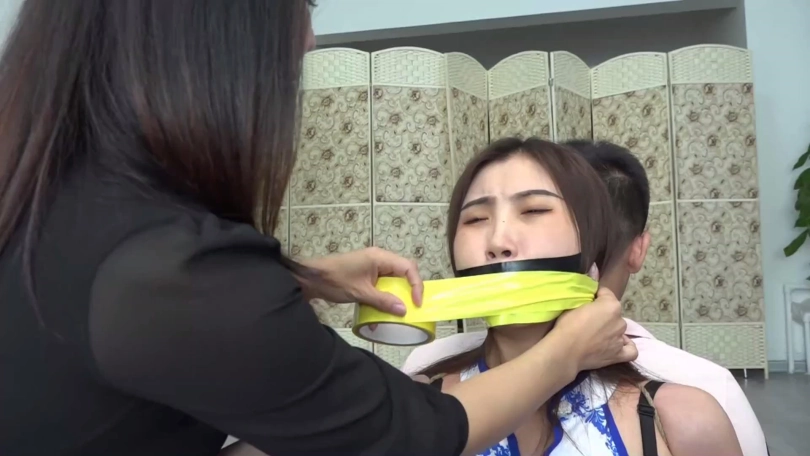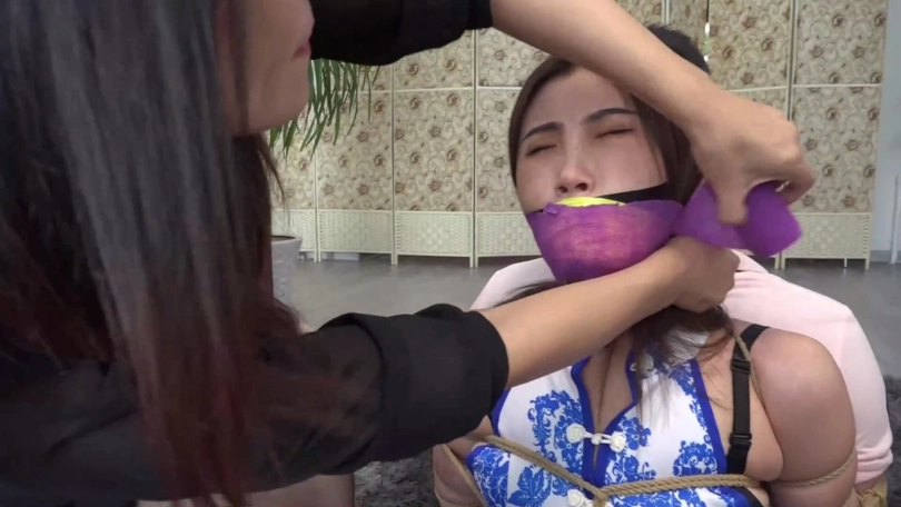 【视频时长】:00:26:53 【文件大小】:863MB 阿琳和著名女模特李然出演。 情节:穿青花色旗袍的美女阿琳从昏迷中醒来,吃惊地发现自己被人五花大绑,双腿脚踝并拢捆绑多道,口中被带上塞口球,整个人被紧紧束缚住。 阿琳试着挣扎,这时候有个黑衣中年女人缓缓走过来,原来是李然,李然笑着问阿琳被绑起来滋味怎么样,原来阿琳一直和李然作对,今天李然说好好收拾收拾她,随即从身后拿出一条肉色连裤丝袜——正是阿琳穿了几天还没洗的脏裤袜,李然解下阿琳嘴里塞口球丢掉,示意她张嘴品尝品尝,阿琳摇头抗拒但被李然捏住鼻子,把手中脏裤袜一点点慢慢塞入阿琳口中,令她十分难受,而后李然去阿琳屋内翻找财物。 阿琳坐在沙发上拼命挣扎,可始终无济于事,过一会儿阿琳的男朋友回家,看见女友受辱立刻上前想给她松绑解开,可没想到李然从身后偷袭,把阿琳男友迷晕了,很快阿琳男友也跟阿琳一样五花大绑,而且情侣二人还背靠背连缚捆在一起。 为了进一步羞辱这对情侣,李然决定直接脱掉他们脚上现在穿的原味袜子分别塞入对方口中,于是阿琳男友脚上穿的黑色锦纶丝袜被扒掉塞入阿琳口中,阿琳脚上穿的肉丝锦纶丝袜被扒掉塞入阿琳男友口中,令情侣二人痛苦万分,而后李然拿黑色胶布封在二人嘴外,用黄色胶带、紫色自粘绷带缠绕多圈将二人嘴封严实。 李然用手机给情侣二人拍照,还故意拿给他们看进行羞辱,愤怒的情侣二人瞪向李然这个可恶的坏女人,李然一看,还敢瞪我,把你们眼睛封起来,于是她拿黄色胶带和紫色自粘绷带缠绕在情侣二人眼睛外,之后带着抢来的财物笑着扬长而去,留下情侣二人扭动身体在黑暗中呜呜呜闷哼挣扎着,可不管如何挣扎绳索都纹丝未动,最终小两口低下头减小挣扎幅度呜呜闷哼喘息着,保存体力等待救援。 ![]() ![]() ![]() ![]() ![]() ![]() ![]() ![]() ![]() ![]() ![]() ![]() ![]() ![]() ![]() ![]() ![]() ![]() ![]() ![]() ![]() ![]() ![]() ![]() ![]() ![]() ![]() ![]() ![]() ![]() ![]() ![]() ![]() ![]() ![]() ![]() ![]() ![]() ![]() ![]() ![]() ![]() ![]() ![]() ![]()