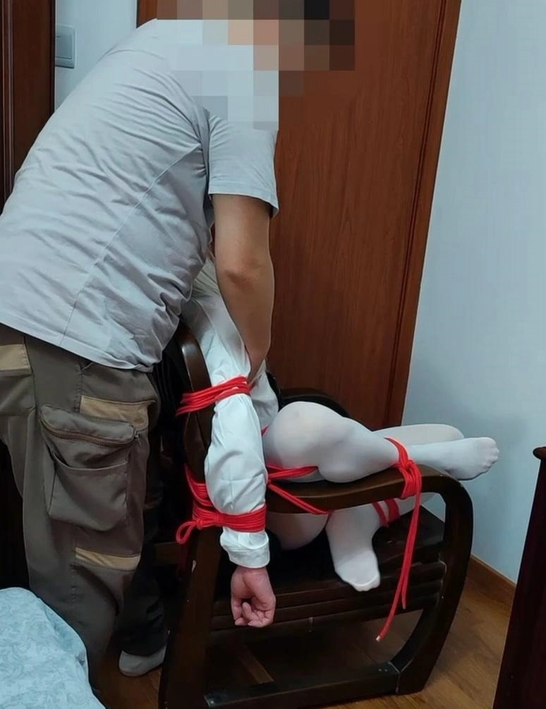 绑法前半段是椅子固定,后半段是床上手绑两侧,玩法主要是TK,震动