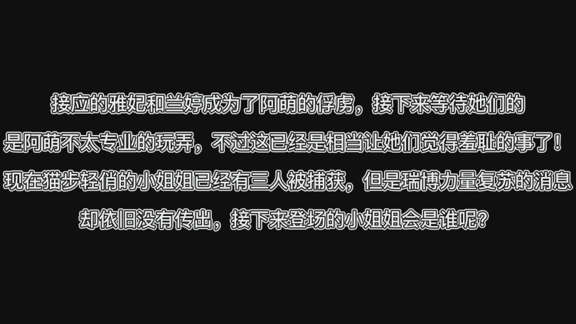 【视频时长】:00:31:16 【文件大小】:1112MB 接应的雅妃和兰婷迟迟没有等到墨桐,着急的她们潜入寻找, 却落入了阿萌和瑞博的陷阱双双被擒,等待她们的是阿萌的玩弄! 本集出演 清岚饰演雅妃 雨晨饰演兰婷 同时回顾一下之前剧情,没有看过的感兴趣的小伙伴可以查看我的主页和列表 1,路家世代守护着神秘的宝物,经常有厉害的神偷尝试窃取,但是均以失败告终,这次前来挑战的是猫步轻俏的美女小姐姐们... (对应猫步轻俏4集,当时还没有给角色命名,在后续视频会有角色名称) 2,路家的宝物没被偷走,但是却遭到神秘组织的袭击而丢失,路家委托侦探苏心然调查和找回宝物, 于此同时苏心然也接到了一个新的委托... (对应缚之轨迹10集) ![]() ![]() ![]() ![]() ![]() ![]() ![]() ![]() ![]() ![]() ![]() ![]() ![]() ![]() ![]() ![]() ![]() ![]() ![]()