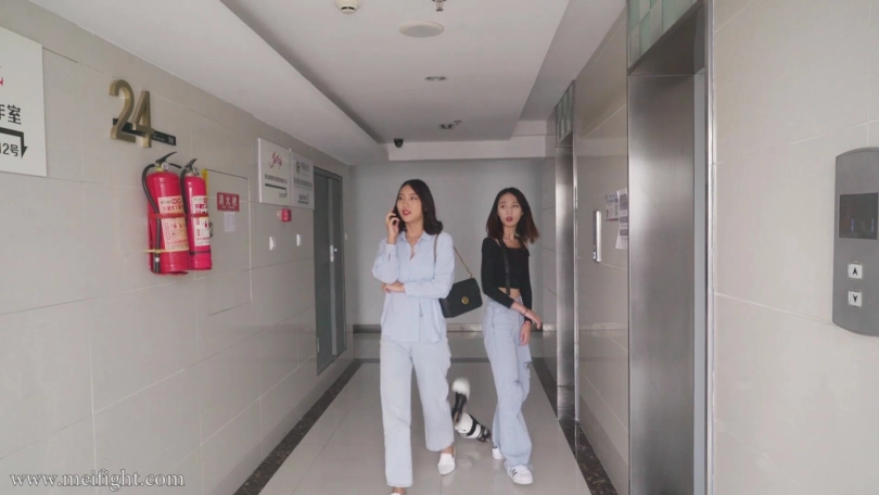 Xinxi (green gloves) and Xiaodie (red gloves) had a dispute at the elevator entrance. Because they were all learning boxing, even if they were beginners, they decided to solve problems in the ropes…