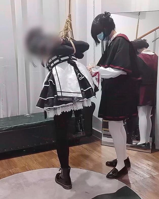 第一段是单腿吊,有白丝斗篷JK客串出场(将来视频里会绑的),用了一小会震动和鞭子,不过太温柔了,其实被绑的这位反而更S一些……后面我上场拉没有被吊的腿玩,以及TK了一下。
