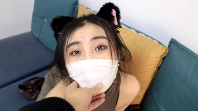 美女被全包脸部只露眼睛,手部也被完全包裹成球,非常戳个人的嗨点,并且加上了诱人的灰丝油光丝袜,可爱的猫耳朵