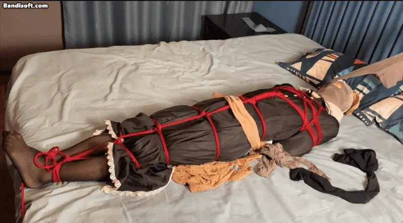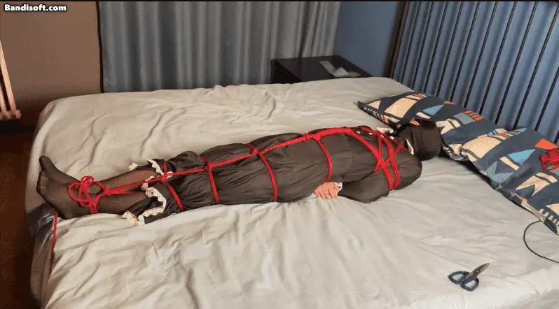 入室盗窃的小偷被黑魔法师抓住了,无法逃脱的小偷被迫接受黑魔法师的调教。首先使用红绳绑住全身,再用丝袜套住小偷的头部和双臂,丝袜绑好以后,小偷被固定在床上,等待着黑魔法师的下一步调教。双手被丝袜的一个袜筒套在后背做成单手套,并且和脚踝绑在一起进行固定,这样小偷就无法逃跑了。黑魔法师最后拿出了自己的真空床,将想要逃跑的小偷装进真空床里面进行调教,真空床紧贴着小偷的身体,把他固定在里面,这样就没有逃脱的机会了。