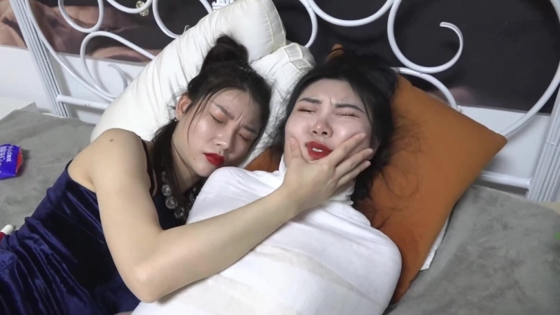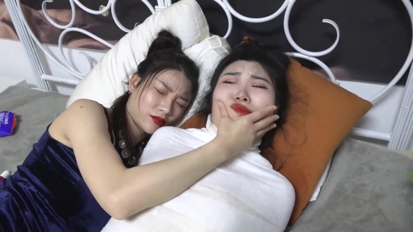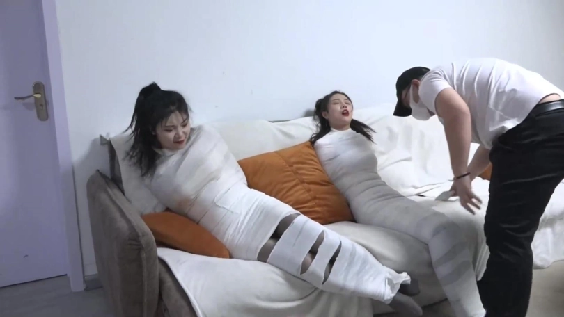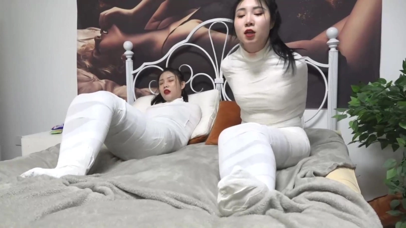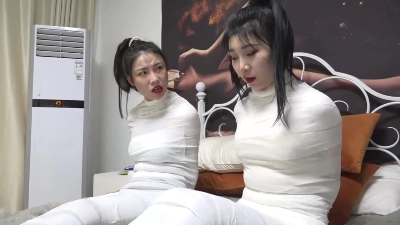 在吴晗被包裹的完全无法反抗时,奇迹出现了,她向一个突然出现的神秘人许愿将柳洋永久包裹永远不能解开,于是2个美人都变成的人茧,而随着御姐女王柳洋发现自己真的完全无法挣脱后开始变的歇斯底里起来。