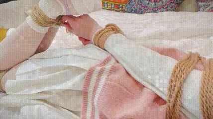 纯纯的脱缚挣扎,前半段被放了TD不过还好用了一半就没什么电了。这种绑法趴在床上蜷起双腿能够到绳结,原本以为这次能好好试试脱缚,但是好像也就只限于这样了...费好大劲解开脚踝上的绳子之后,突然就陷入了迷茫...最多只是多了点移动空间,被绑着的手和大腿没有半点变化,还是被绑得严实。经常有小伙伴问有没有堵嘴,虽然经常会戴着口罩,但是其实几乎每次都有堵嘴的,毕竟对我自己来说堵嘴之后会让我更想快点挣脱,让心里觉得更自然这样,虽然我也不知道为什么hhh
