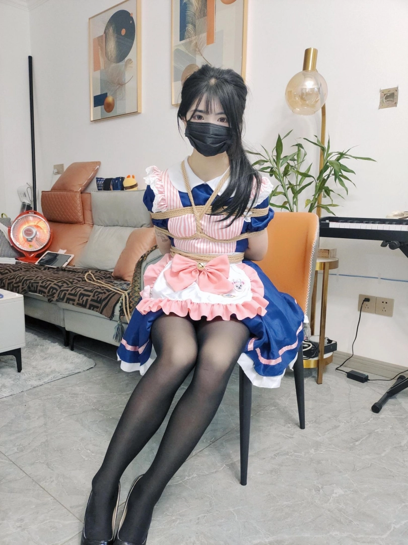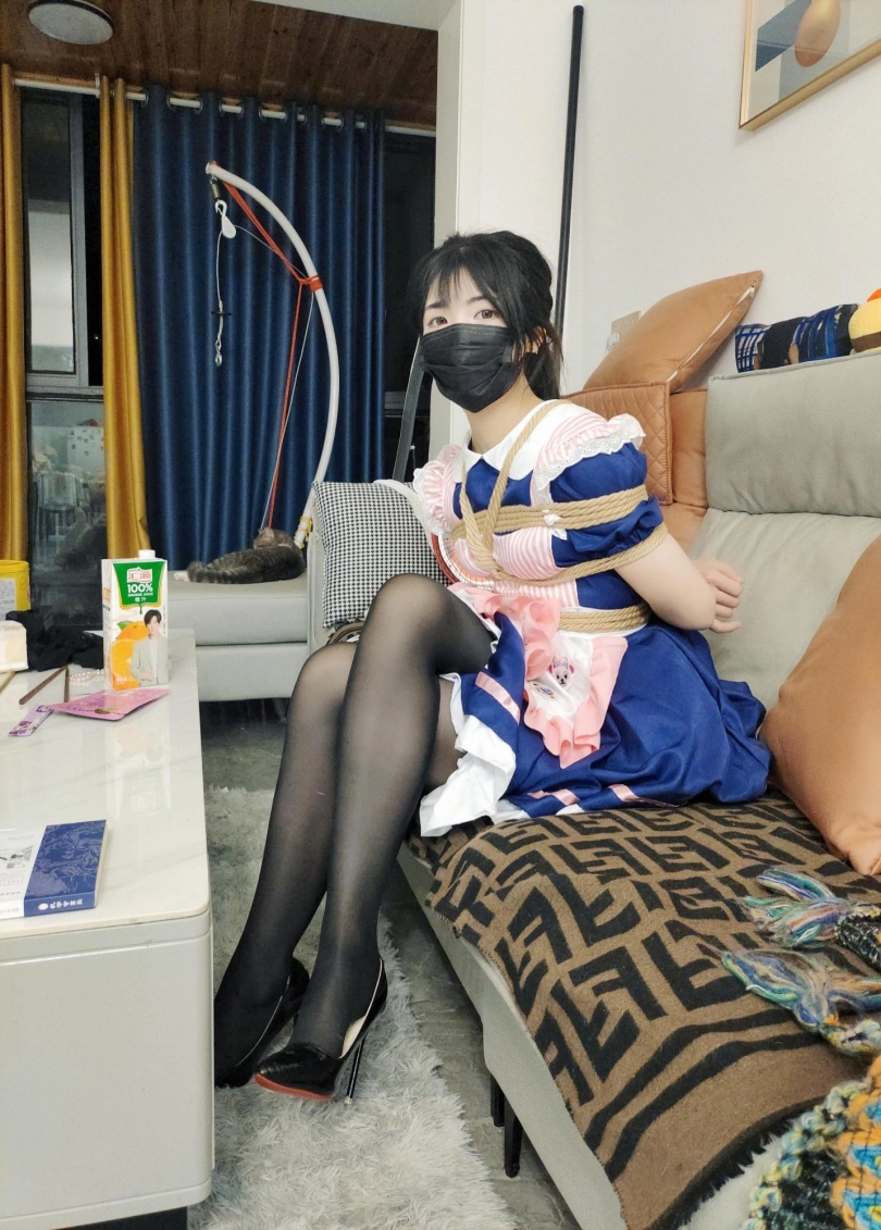 这次蒙面大叔回家看到小m正在弹钢琴,还穿着新买的蓝色女普装!场景太唯美了,还没等她弹完就直接动武,蒙面大叔动作是真够狠的,各种捆绑,站着,坐着,吊着,全部试了个便,足足的折磨了3个多小时之后小m已经精疲力尽,最后蒙面大叔依然没给小m解开绳子,扬长而去,出去找朋友喝酒去了!