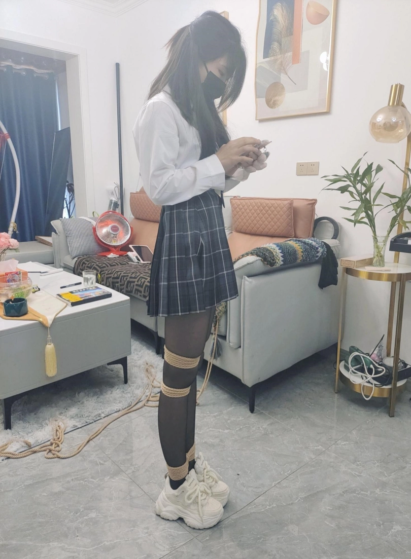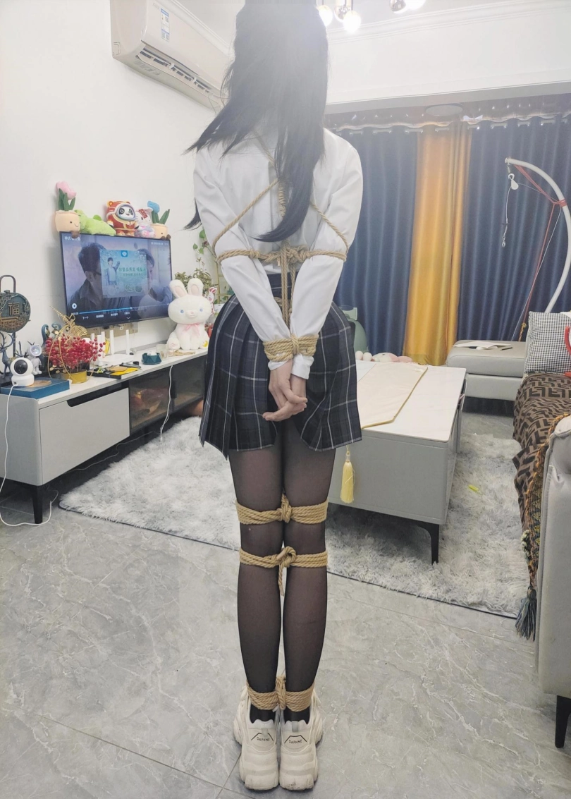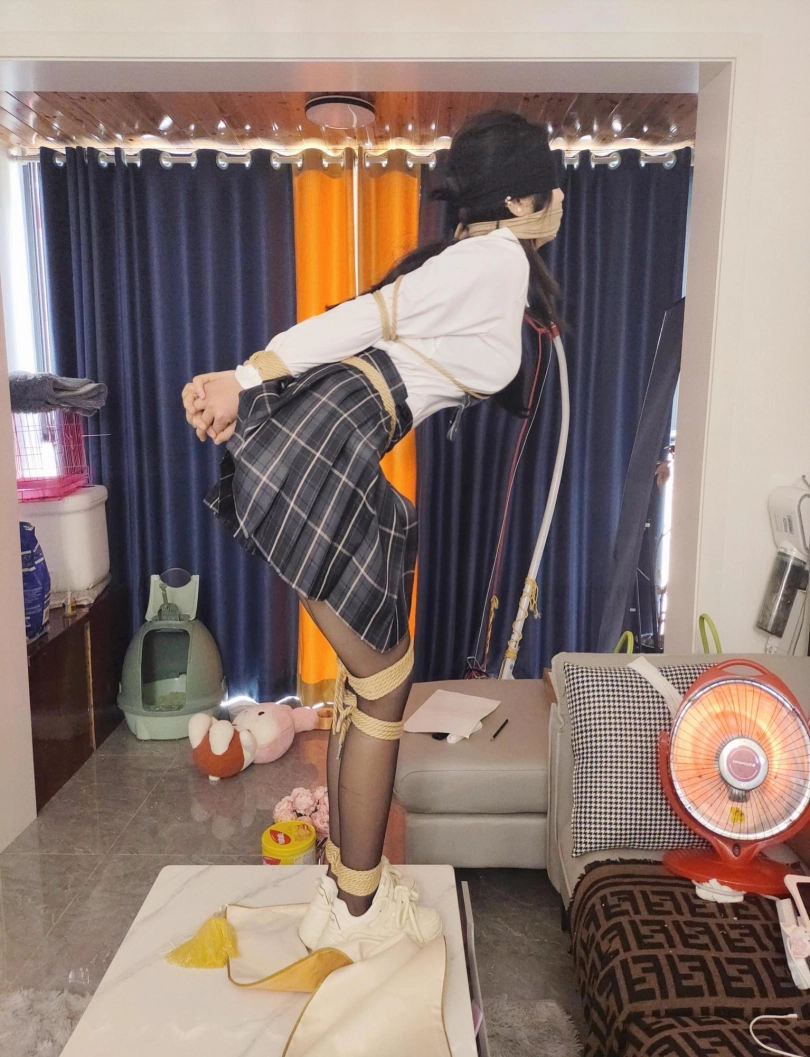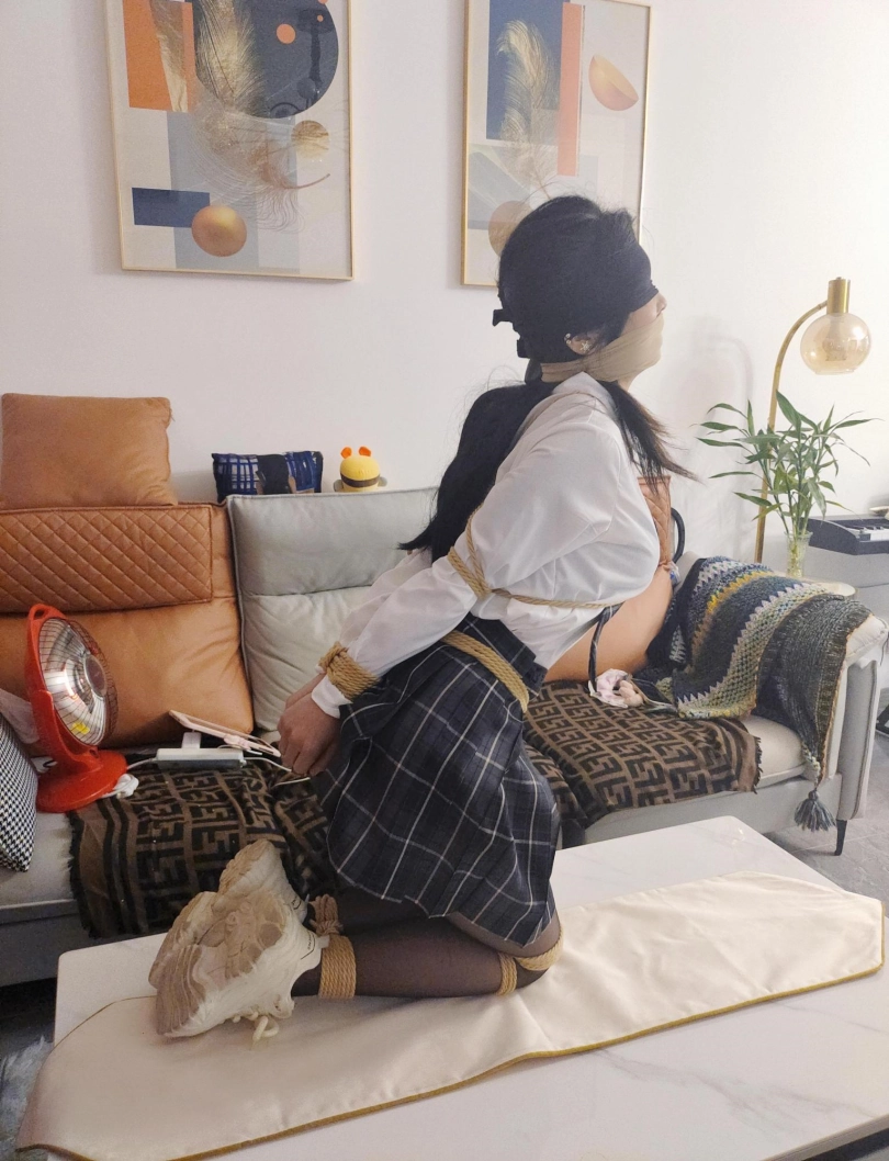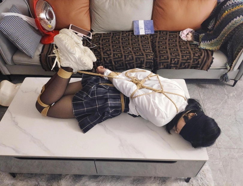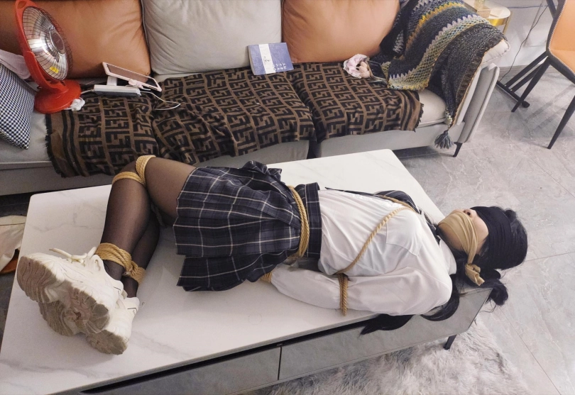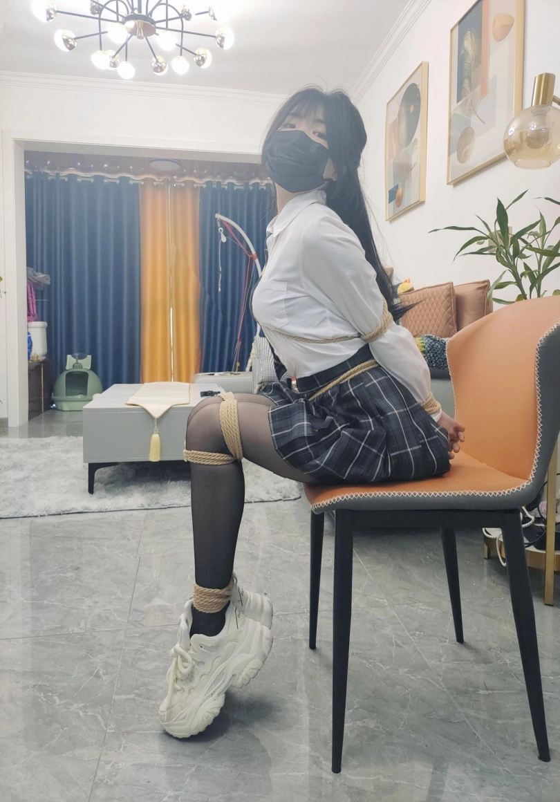周末小m准备收拾好东西回学校上学了,一身精致的jk学生装穿好后准备回学校,蒙面大叔正好回来了,看见这一身行头怎么舍得让她马上走,去冰箱里面拿出了自己做的芒果冰淇淋,趁小m在吃冰淇淋不注意的时候悄悄跑去拿出了绳子,,,,绑到了桌子上进行一翻折磨,过程中先捆的腿,小m还在给老师发信息请假说要迟点到学校,还是很敬业的,由于作战时间太久了,最后,一直求着放开她,说真的要吃饭了,记得快哭了,,,,