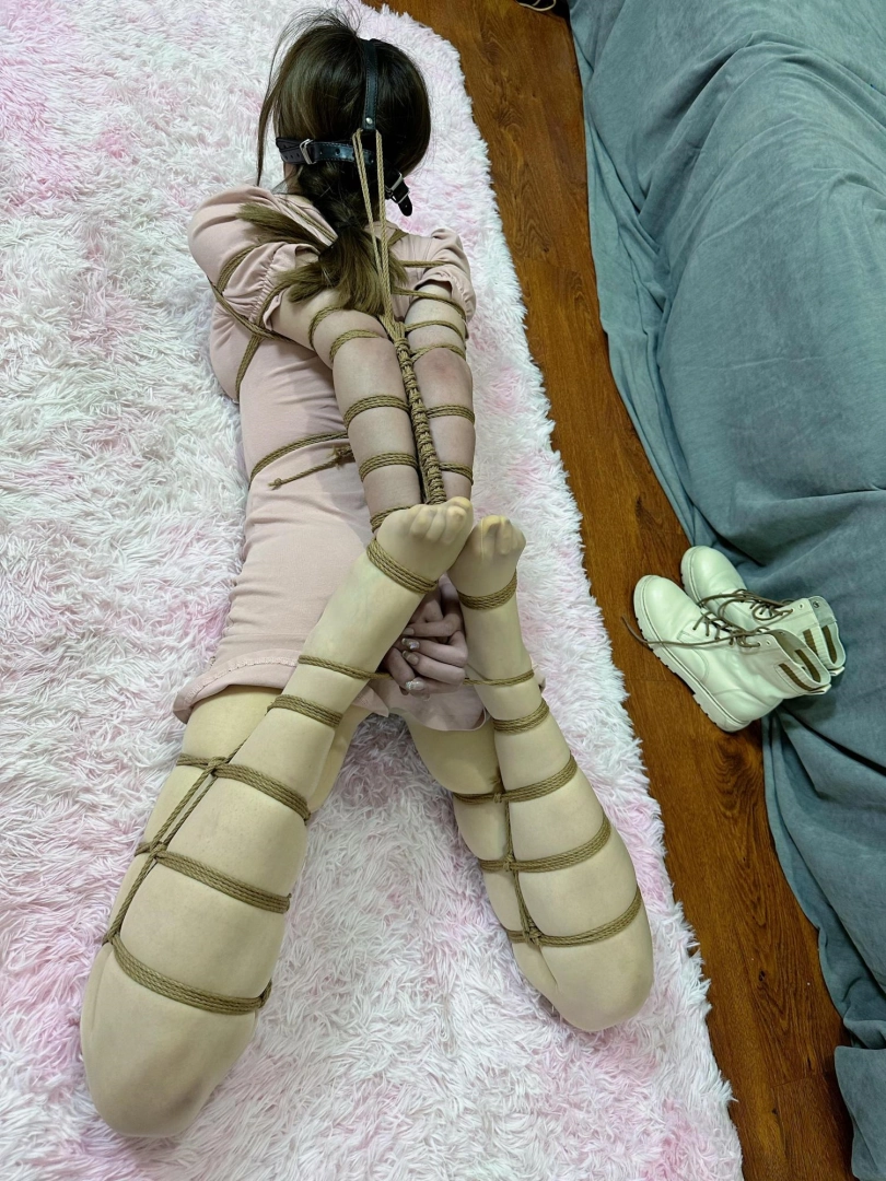 第一段:并肘欧式开腿缚 马具口塞强制抬头驷马 放置挣扎 可怜的琪琪一直呜呜叫 解开后手已经没有知觉了