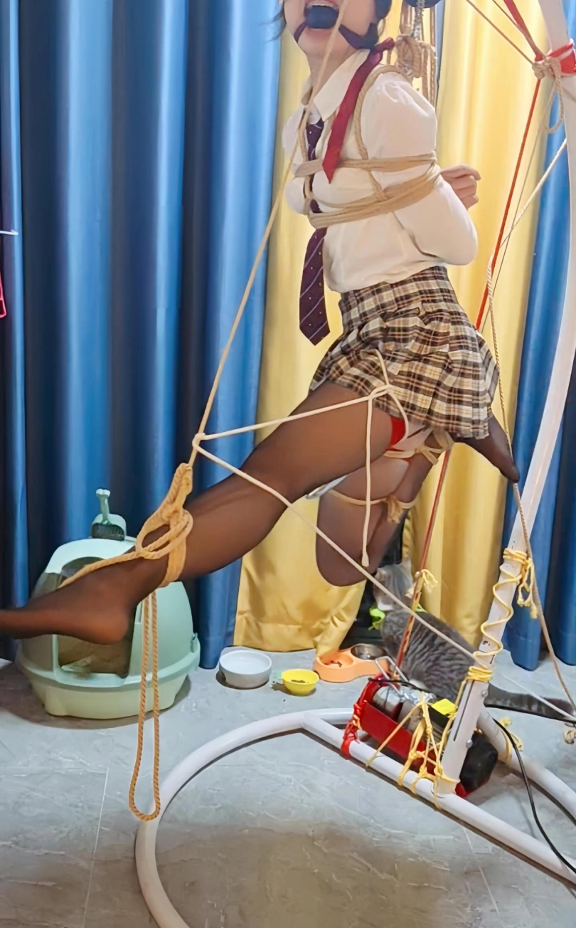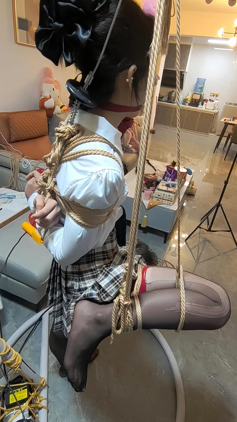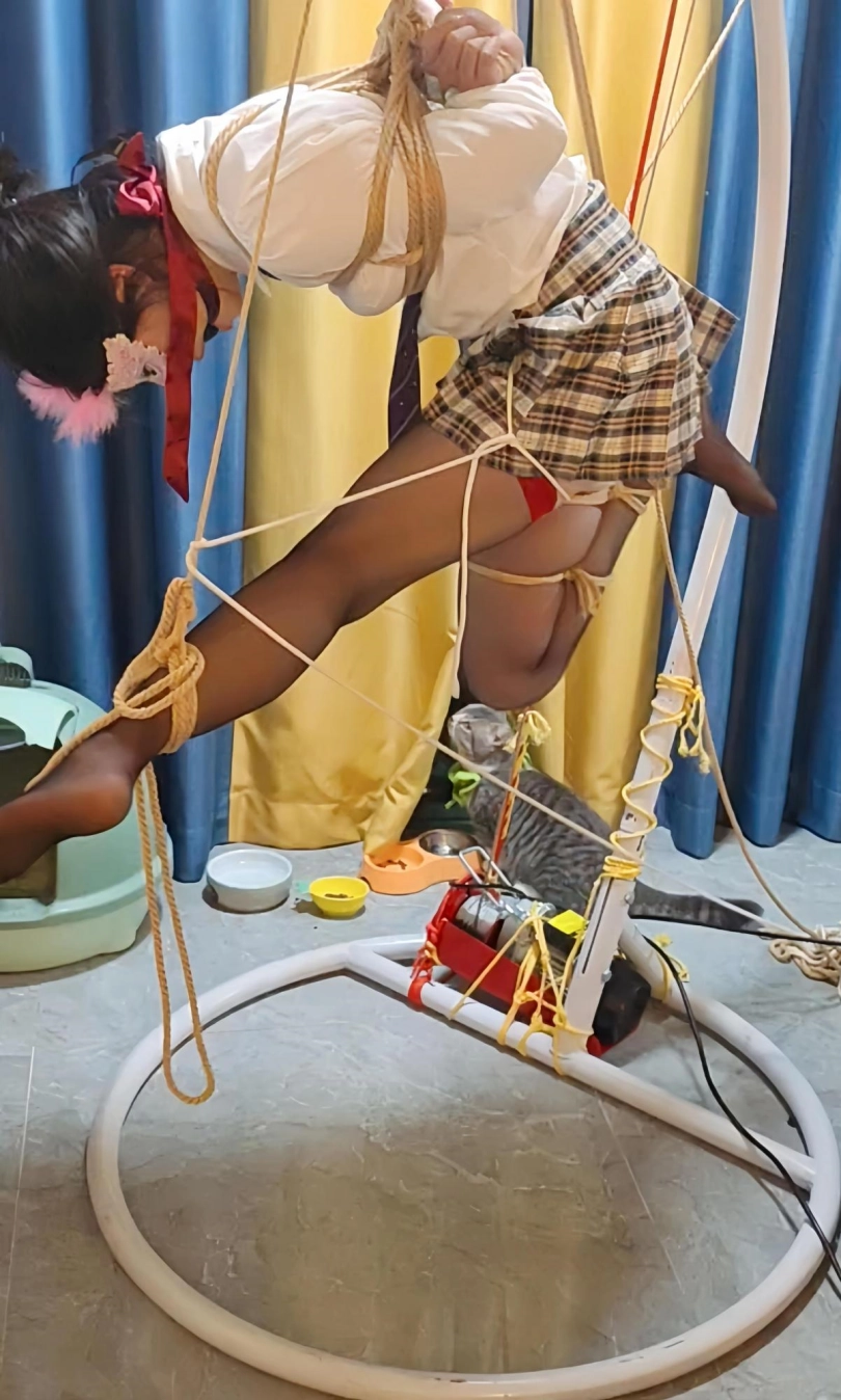 最近小m看狂彪上瘾了,完全不理大叔,大叔一气之下,行吧就把她捆好了吊着看,捆好之后大叔就去洗澡打游戏了,回来又给她吊了起来,这下小m可能以后都不想看狂彪了。
