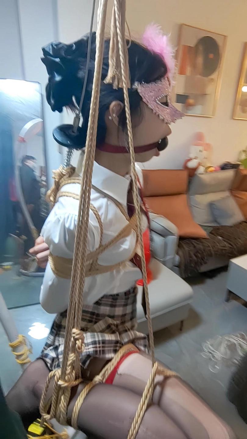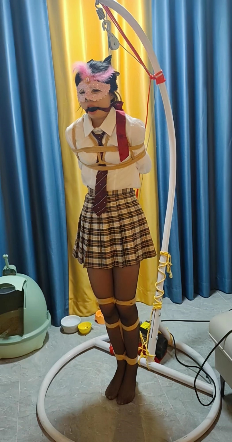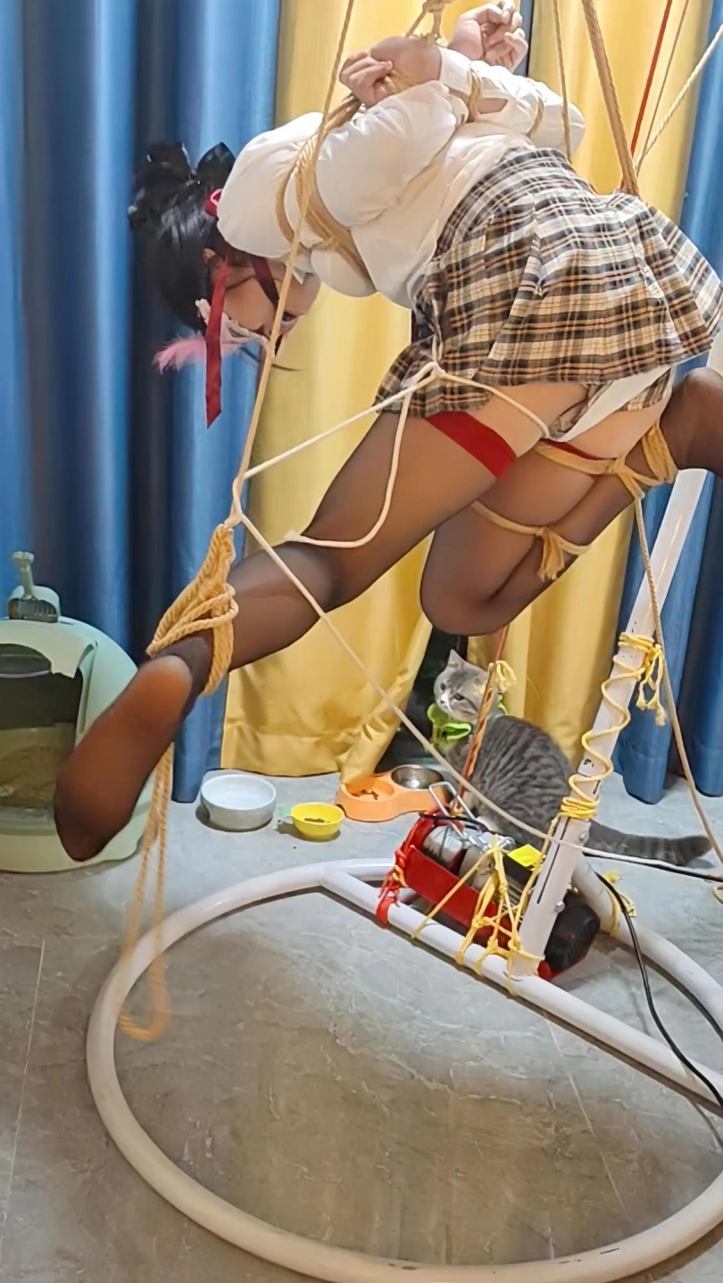 最近小m看狂彪上瘾了,完全不理大叔,大叔一气之下,行吧就把她捆好了吊着看,捆好之后大叔就去洗澡打游戏了,回来又给她吊了起来,这下小m可能以后都不想看狂彪了。