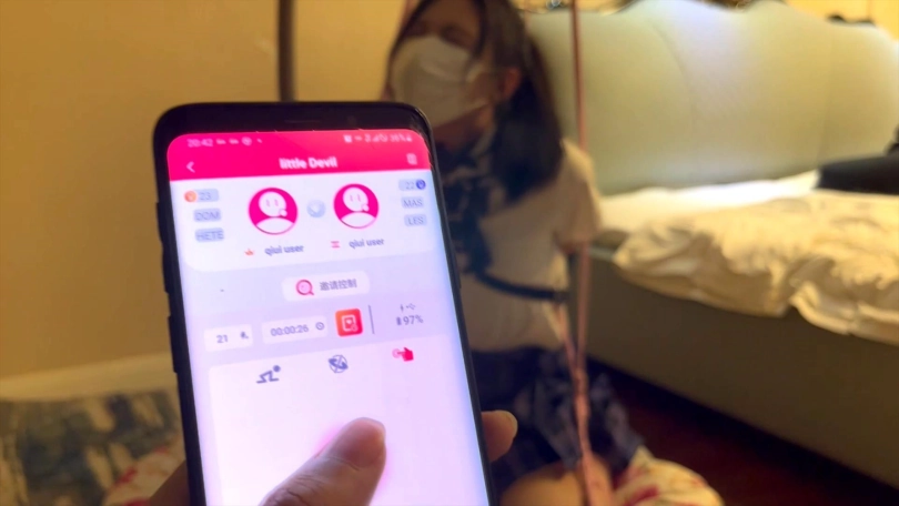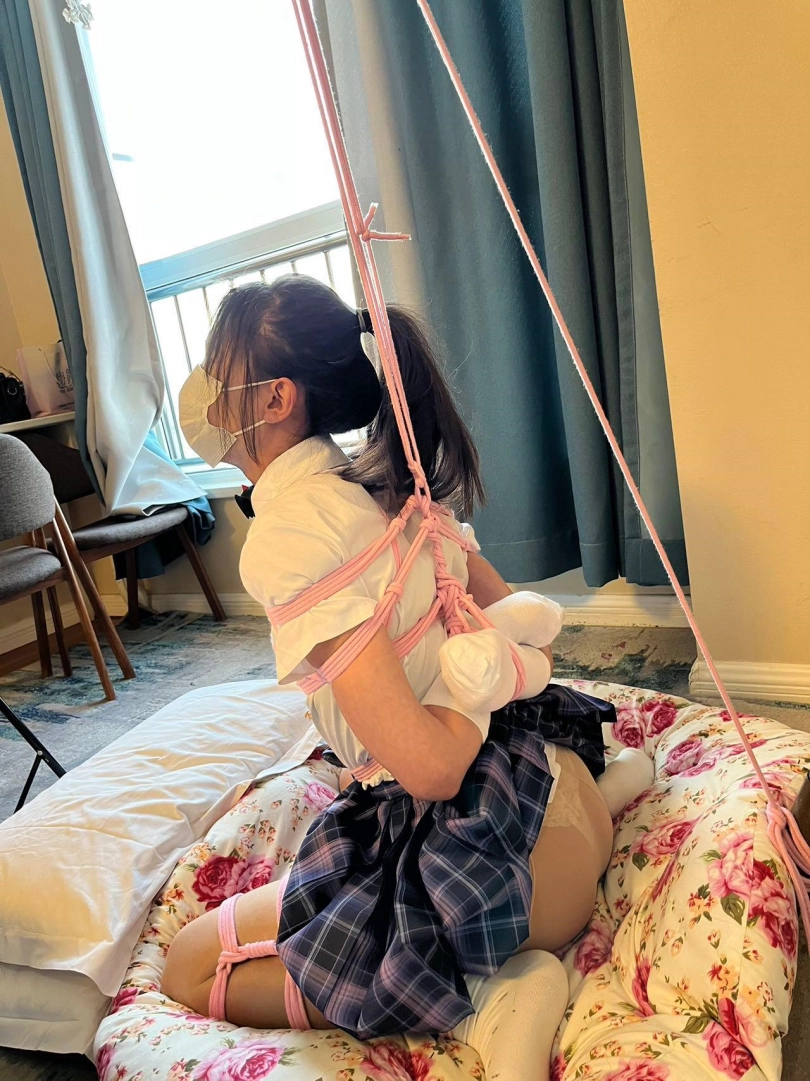 解锁新玩法了,用绳子和单手套固定好晴子,带上小恶魔电击项圈,设定初始位置和活动范围,如果活动超出规定范围就会被电击,这个比郊狼疼很多。
