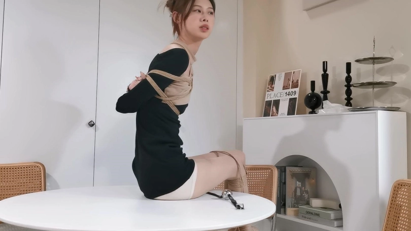 新来的妹子嘉一,现在是空乘专业的大学生,长得非常长甜美,嘉一是第一次被绑成驷马放置,带口球显得还挺楚楚动人的。