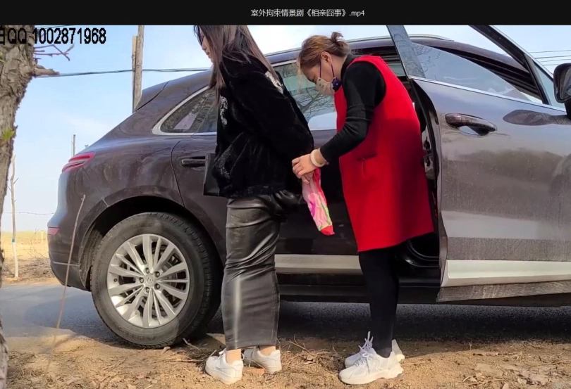 片名:相亲囧事上次有拍过一次让女模特穿皮裤,两腿套在一条裤腿里,这次还想拍一下外景的。