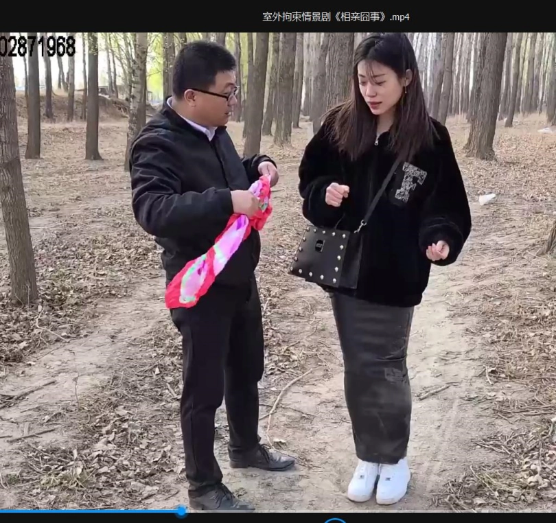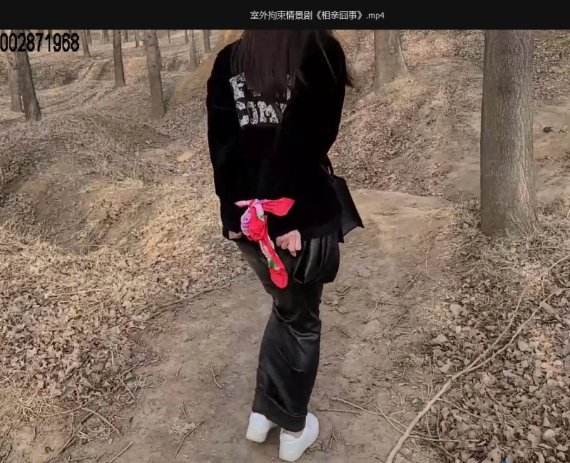 男人已经离开,女人原地挣扎好一会儿,怎么也无法挣脱丝巾的捆绑,只能迈着小碎步满满挪....