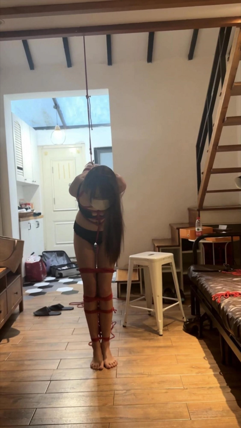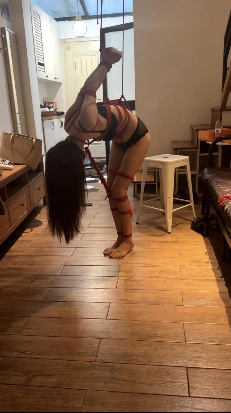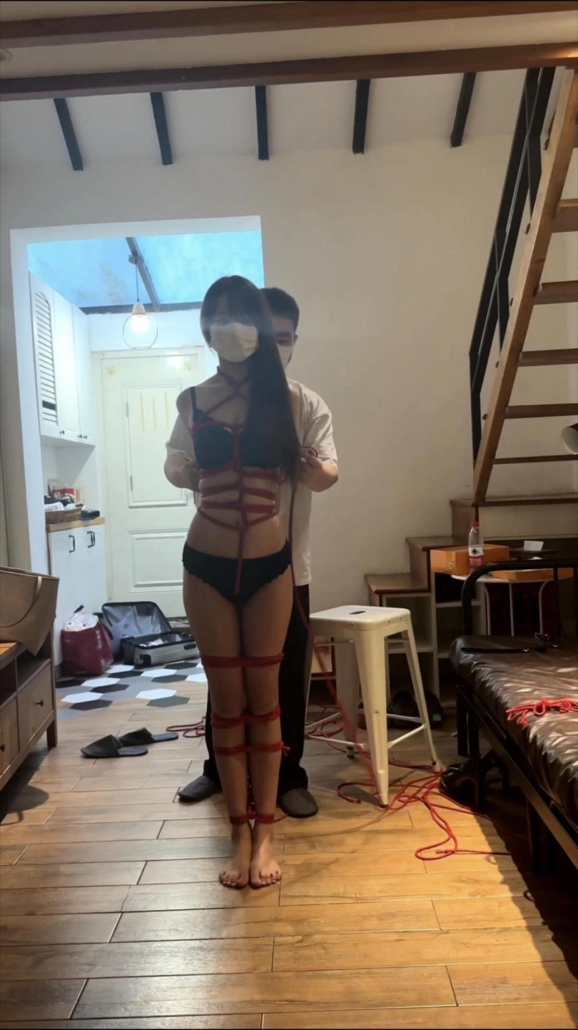 小骨头第一次绑这么极限的动作,一直在安抚模特,因为太痛苦而且加上振动棒的调教下不得不提前解掉。