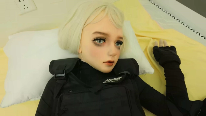 我超喜歡這件衣服!我一定要再說一次! 全包皮肤的質感、泡泡袖、綁線簍空、背後拉鍊,真是我的喜好集大成,搭配影真是太可愛惹!