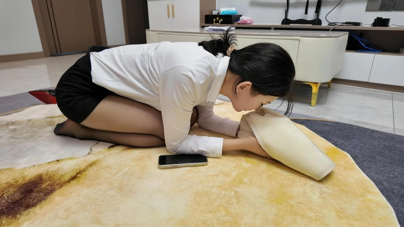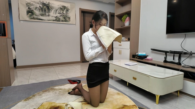 晓琴是公司职员,没有完成业绩,打电话给老板,主动要求惩罚,打一百个耳光,叼着高跟鞋蹲马步,姿势不达标,又被加罚二十个耳光,最后脱下长靴,惩罚闻自己的臭鞋