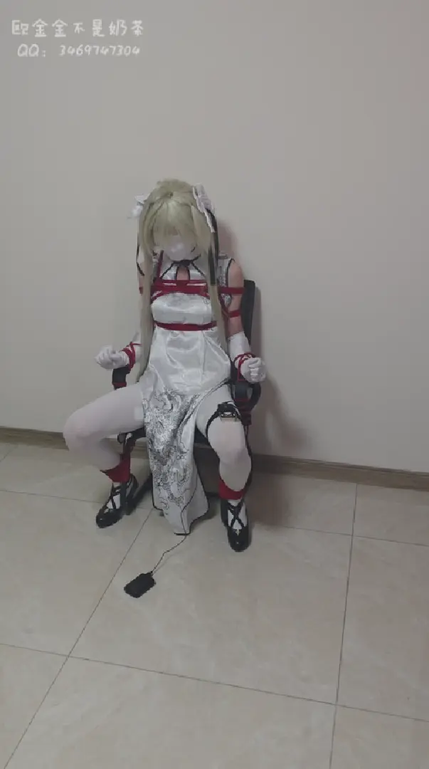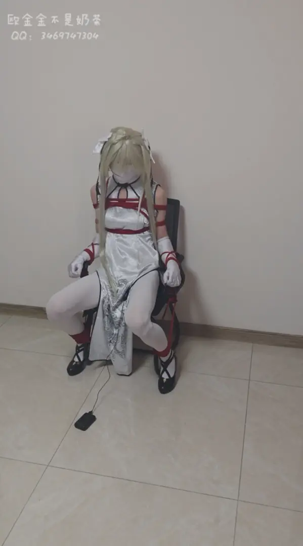 穹被蒙住眼睛,嘴巴也被白丝封住。她的身体被绳子牢牢固定在椅子上。身下的小玩意儿正不知疲倦地持续震动,发出细微却无法忽视的嗡鸣,阵阵陌生的快感如同潮水般拍打着她的神经。她不断挣扎试图挣脱这令人室息的禁锢。但红绳深深地嵌入了她的肌肤,每一次用力的反抗,只会带来更深的束缚与徒劳。那嗡鸣声依旧固执地响着,在一片昏沉的黑暗中,格外清晰。