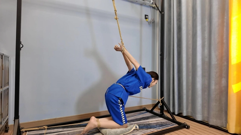 女犯李佳佳被各种刑法审讯,大字捆绑,后手吊,老虎凳,后手观音驷马放置,最后关笼子