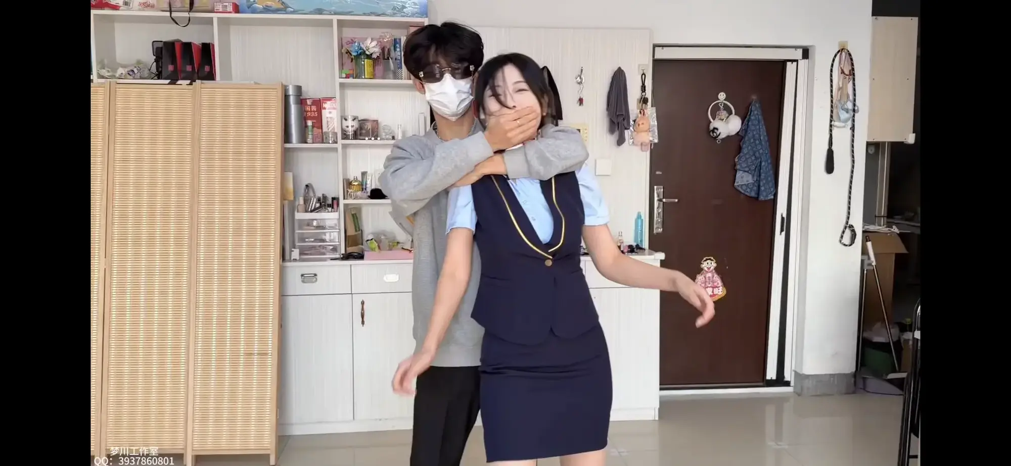 场景一:杨雪(空姐半裙装+肉丝)从外面回来,刚打开房门就被人从后面