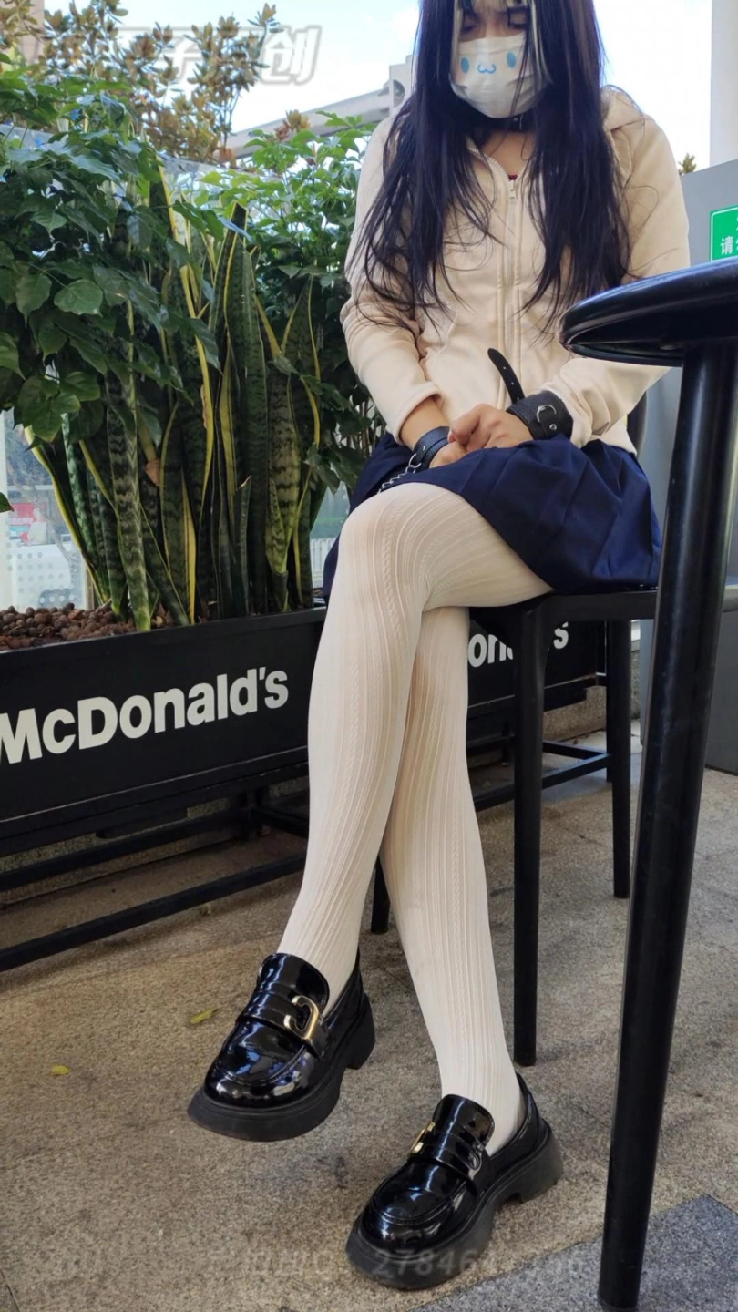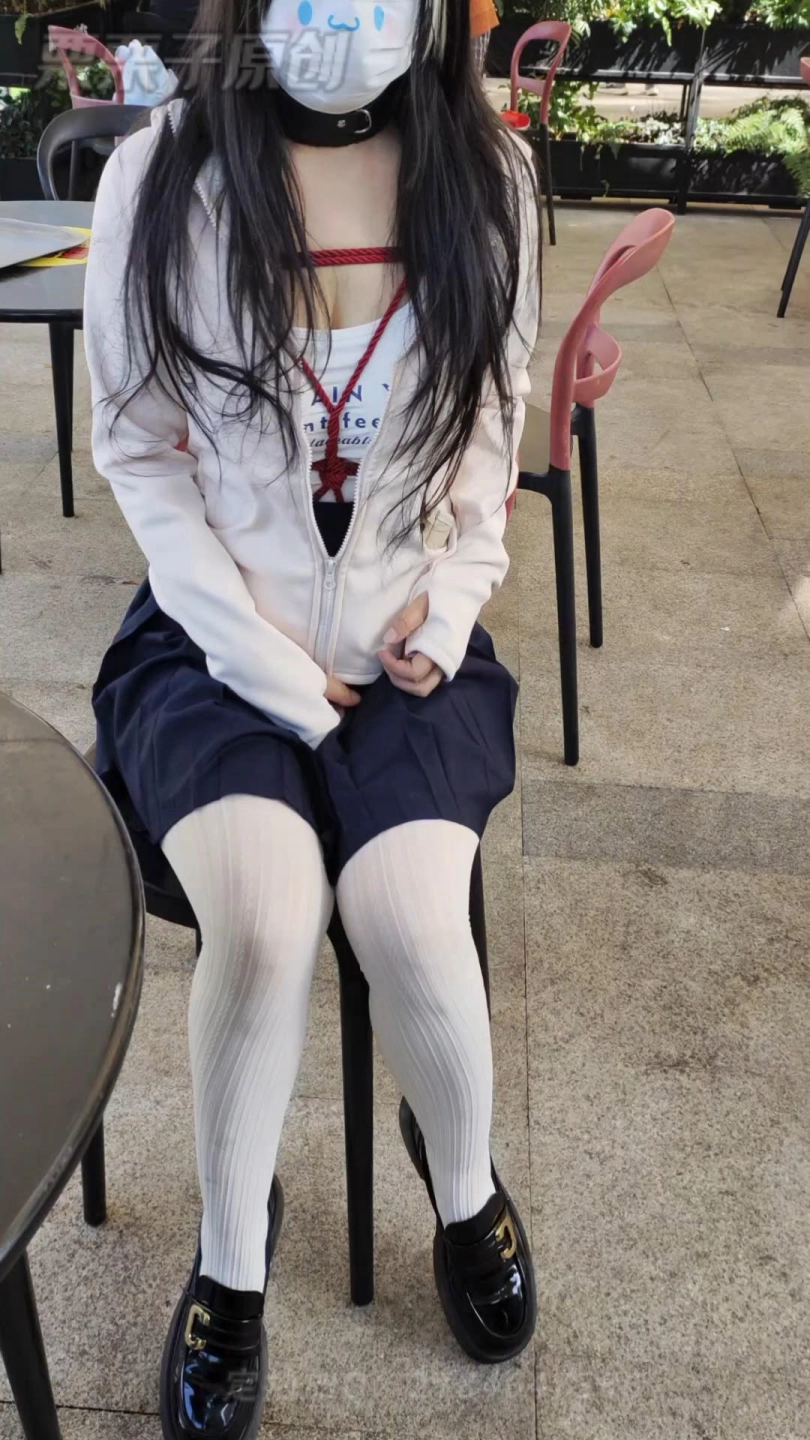 为了找个安全点的地方走来走去,最后坐在最角落,用手铐将自己的手靠在身后,任由主人加大马力让快乐蛋开启最强震动,旁边走来走去都是人,变态人妻却呻吟着niao出来,嘻嘻!