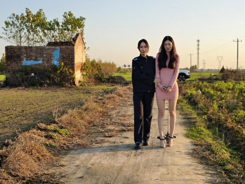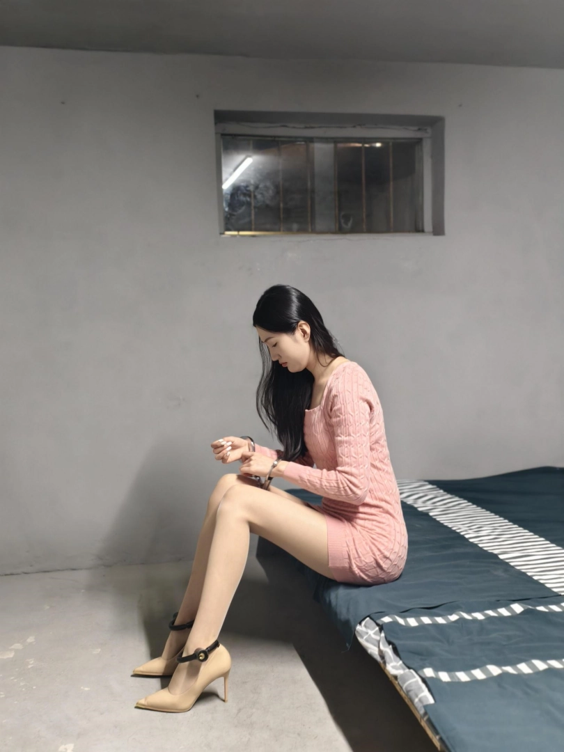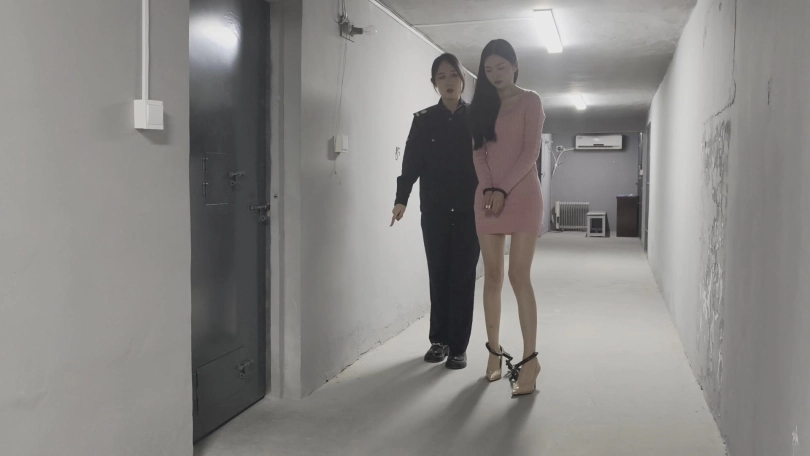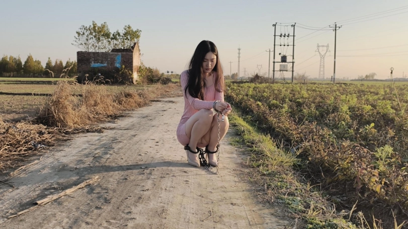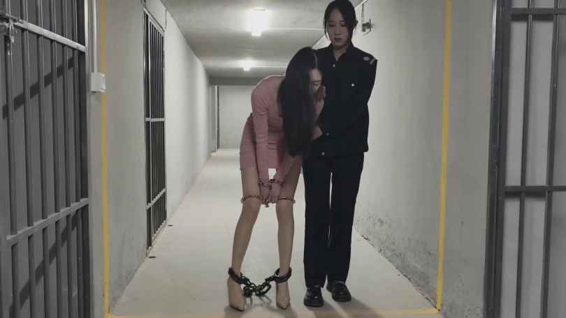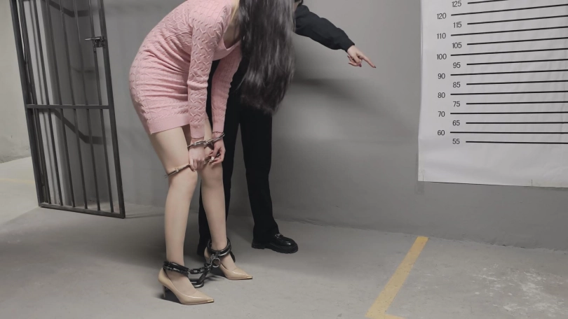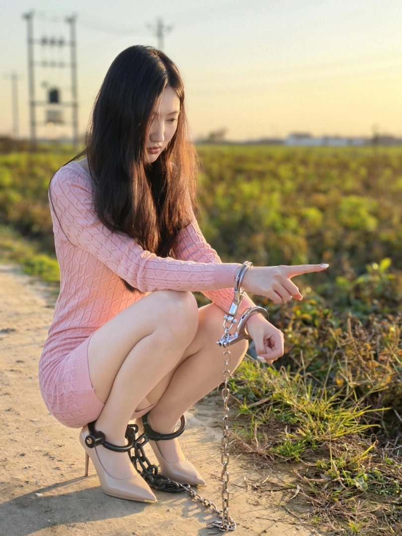 回来后被惩罚,带大腿铐,手铐,连在一起。关笼子惩罚。