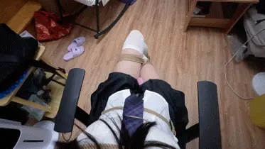 腿被绑成了二郎腿,记得之前也尝试过一模一样的绑法,不过和上次不同的是这次加了可恶的TD…因为二郎腿的姿势导致腿在上下被固定起来,所以TD的感觉比较难受