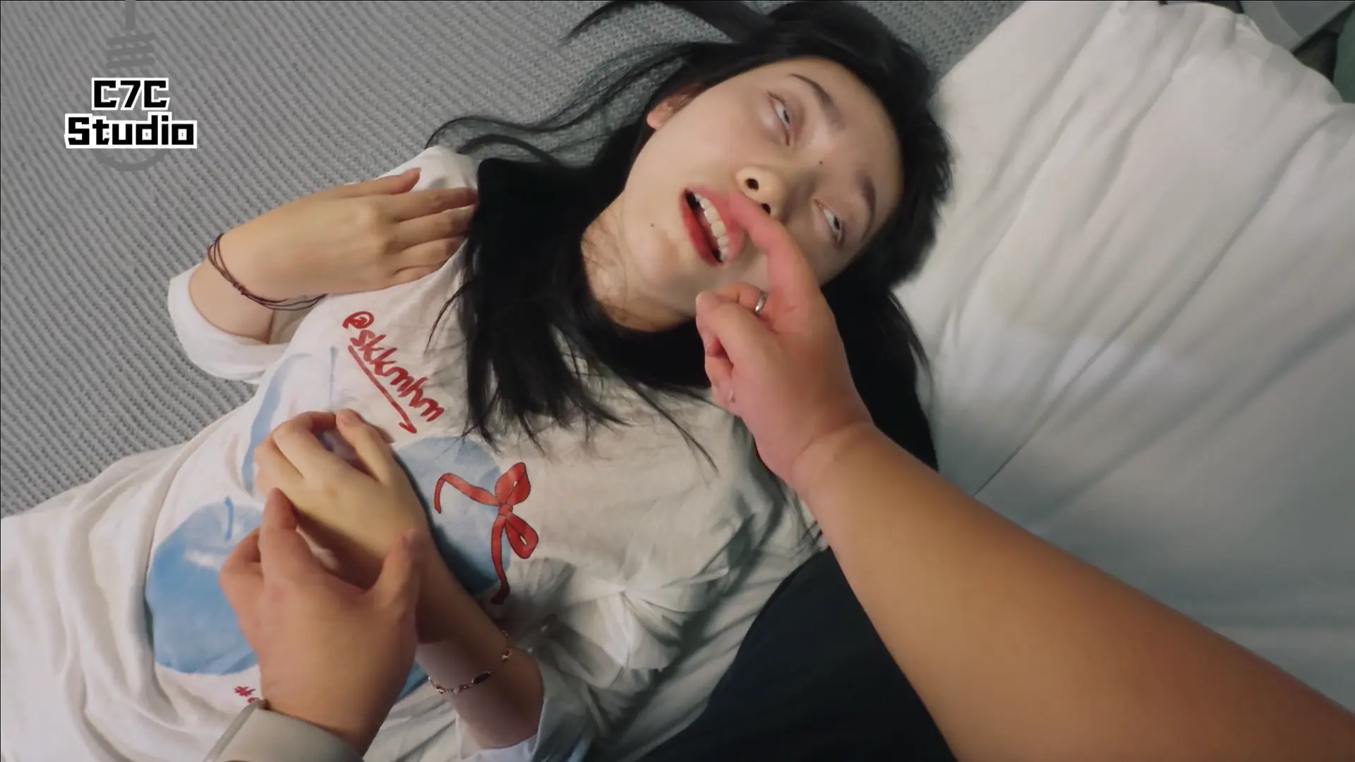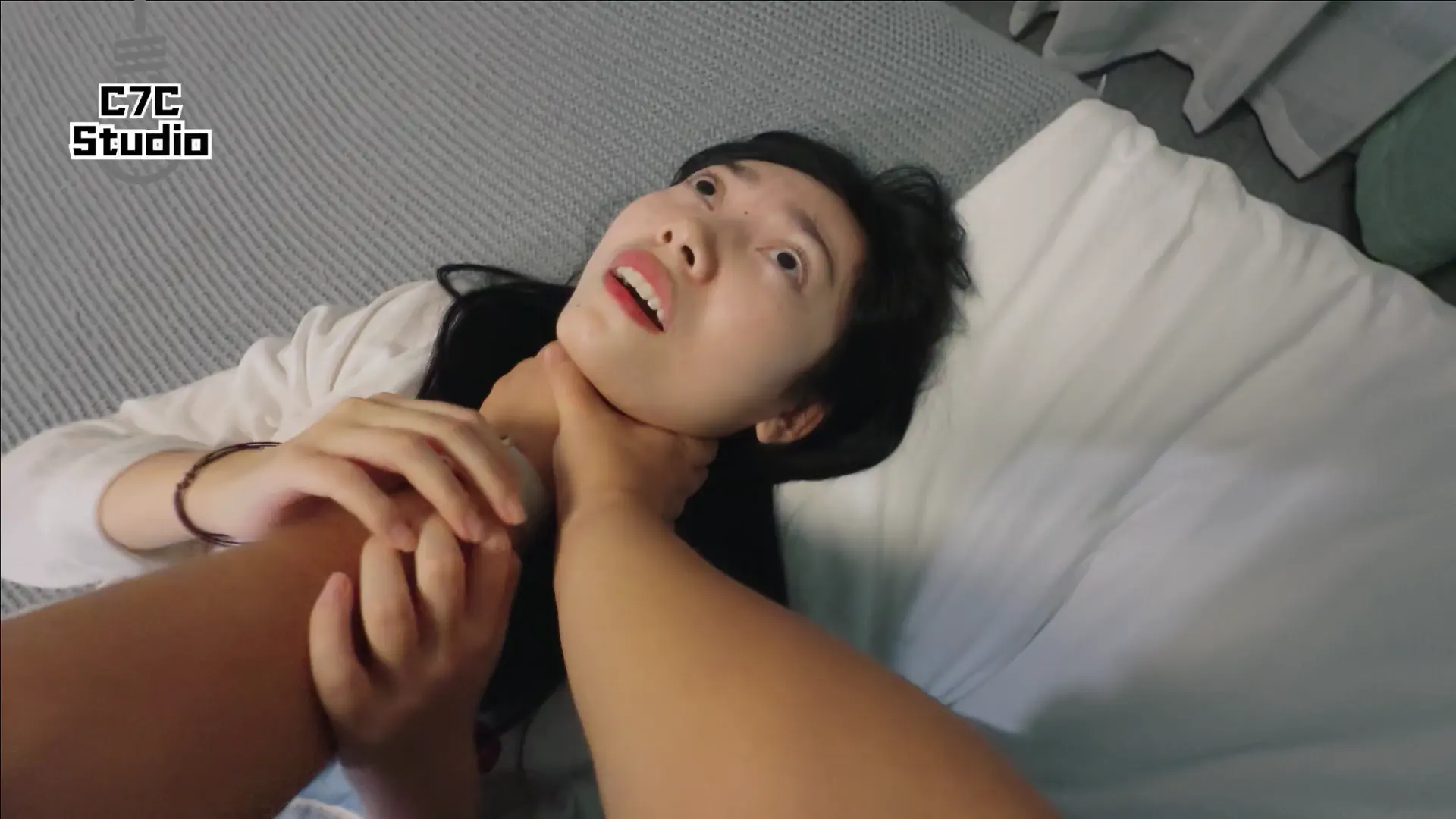 素人妹子没有化妆,感觉演的还是不错的。玩脚的过程比较简单