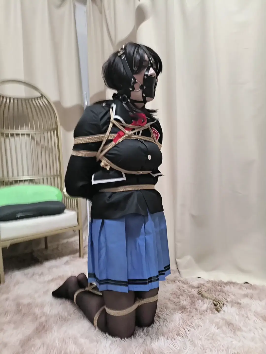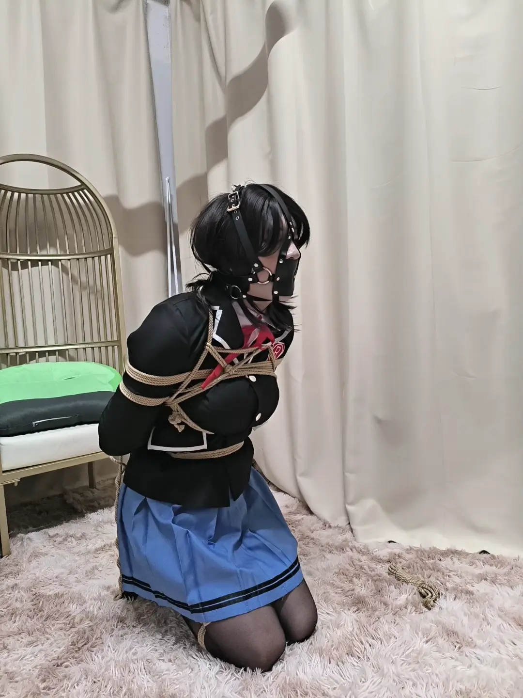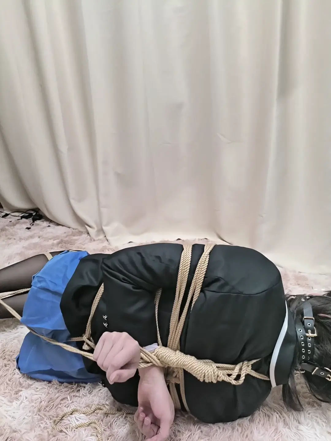 好久没自缚了,突然心血来潮玩一下!有自缚全过程。幸好叫上了朋友,要不还真解不开绳子。绳套套了3圈,手被勒得紧紧的完全挣扎不开。