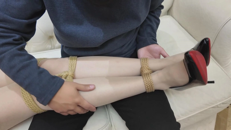 双手在她修长洁白的肉丝美腿上来回抚摸!