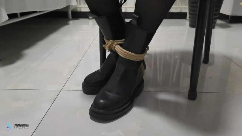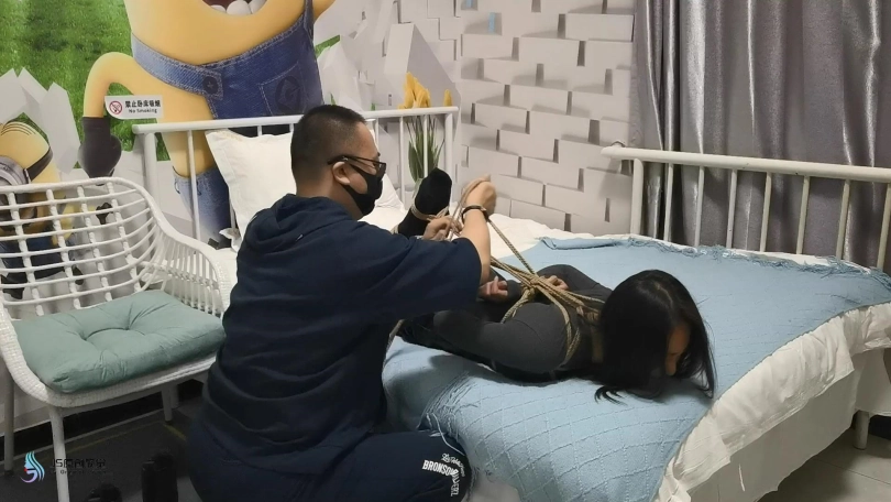 劫匪潜入女人家中,等女人回家被劫匪从后面捂住嘴巴将其捆绑在凳子上。女人挣脱了束缚,刚跑到门口就被劫匪抓了回来。生气的劫匪脱掉她的靴子将女人驷马捆绑在床上。嘴里塞上布团,外面用胶带封堵。劫匪开始猥琐女人,抚摸她的全身,亲吻她的丝袜脚。最后离开。最终女人挣脱束缚成功自救。