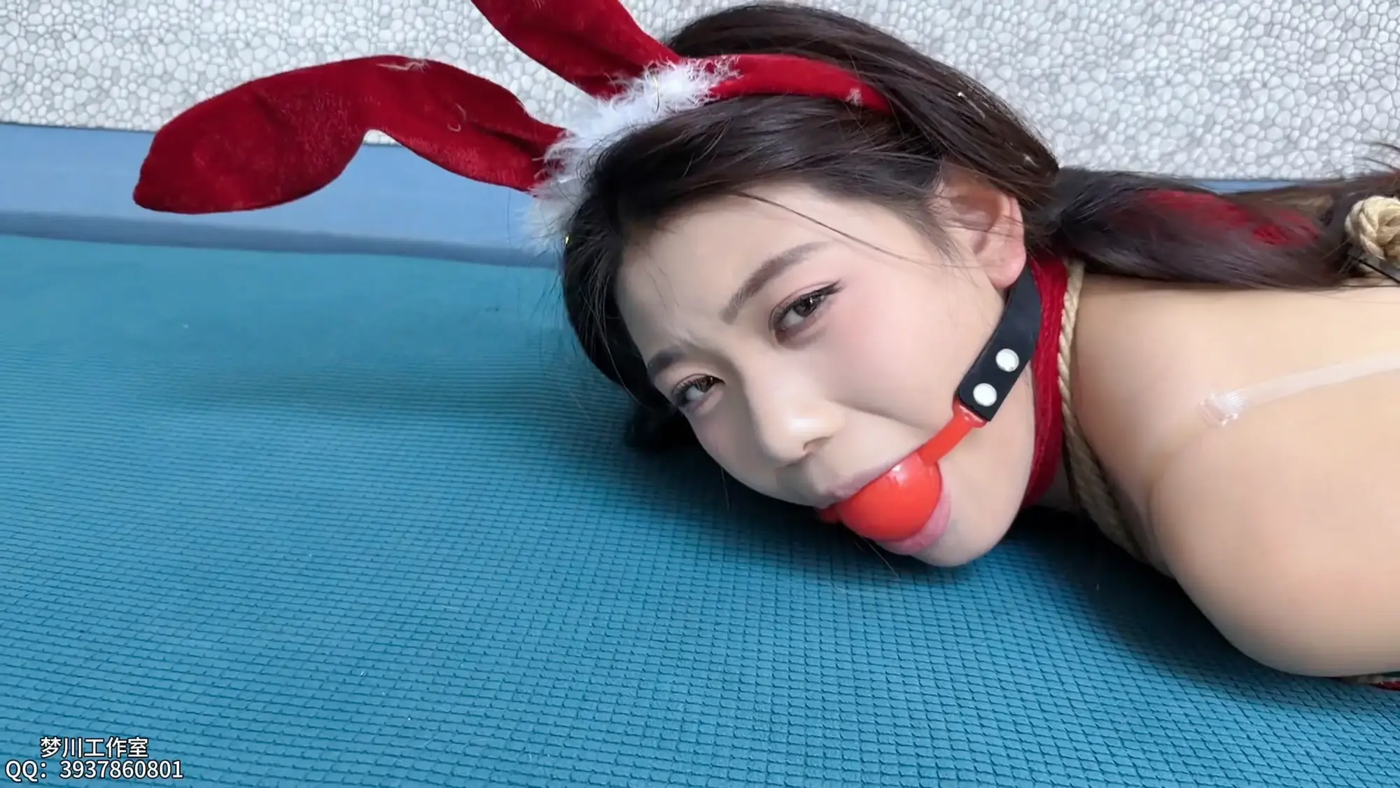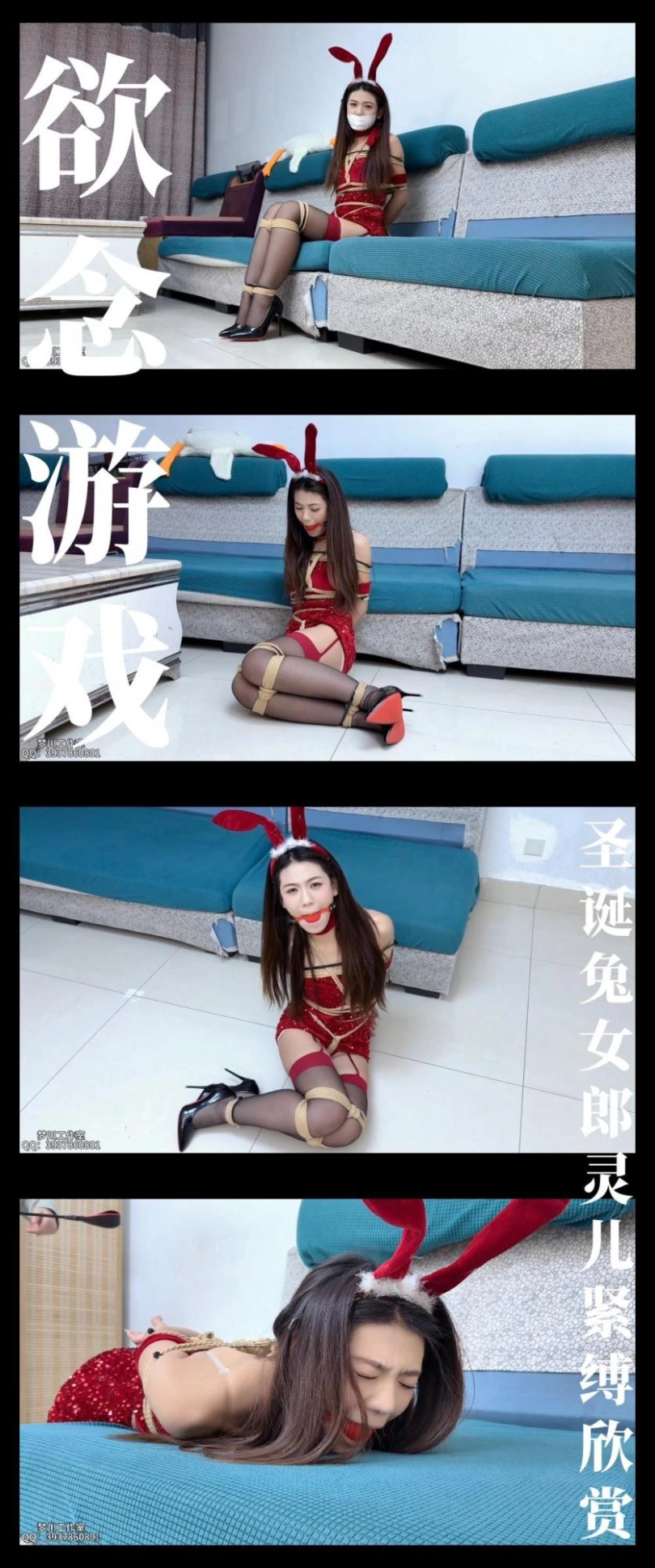 现在的她化身为了圣诞兔女郎,被绳子束缚了自由,就像是精心包装的礼物一般,