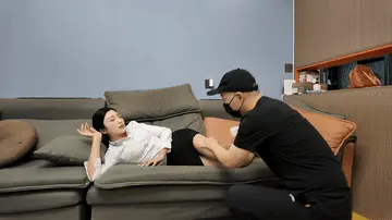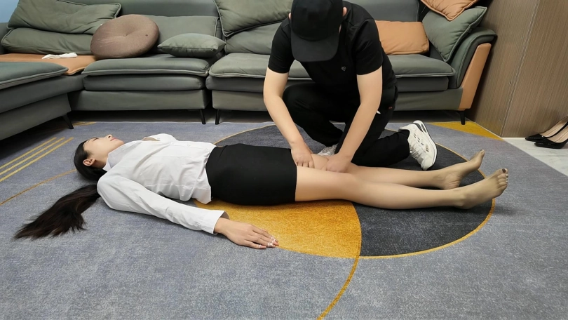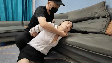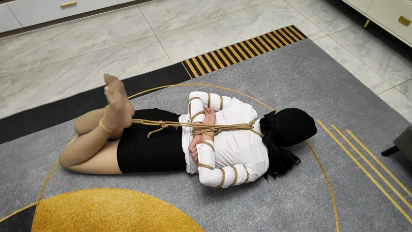 佳佳练完瑜伽在沙发上玩手机,一会困了就躺沙发上睡着了,此时房间溜进一神秘男子,佳佳迷迷糊糊发现有人在抚摸自己的丝足,不由惊醒大声问道,你是谁,神秘男子快速从口袋拿出毛巾将其捂晕,慢慢放到沙发上,这下可以尽情抚摸丝足了,时不时还抚摸一下酥胸,满足之后...把佳佳驷马捆绑,丝袜堵嘴,丝袜套头,扬长而去