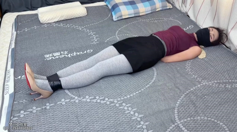 在经历一段时间挣扎后,灵儿挣脱了手腕的束缚,但是就在出门之际被王妻撞了正着,又对灵儿进行了更加严厉的绳子捆绑,并且脱掉了灵儿的灰丝漏出性感肉丝,之后用胶带开始缠绕其整个脸蛋鼻子和眼睛,最后放上跳蛋开始折磨……