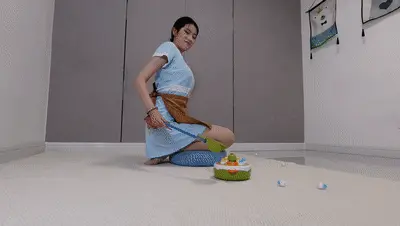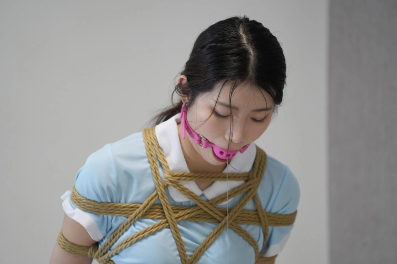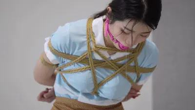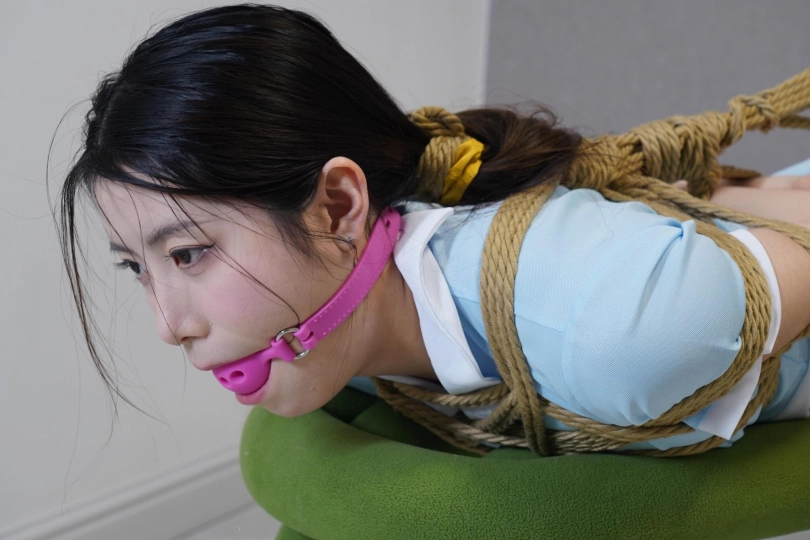 享享今天扮演的角色是好利来女仆,用手铐将她反手固定住,再去接弹射起来的小恐龙,可惜只接住了一只黄色小恐龙。享享只能体验一下提前为她设计好的惩罚啦~先用绳子将她的上肢固定住,享享用力蠕动,都无法摆脱绳子的紧紧束缚。再依次叠加惩罚,用粉色口球将享享的嘴堵住,跪着~站着~享享的嘴里全是口水,口水顺着口球流了下来,滴落在了地上,享享看着口水一直流,却无法控制~接着就是驷马缚体验,将头发、上肢与脚绑缚在一起,绳子拉拽着头发,她不得不将头抬起来,享享戴着口球,只能任凭口水滴落在地上,再叠加挠痒痒惩罚,她只能趴着等待惩罚结束~