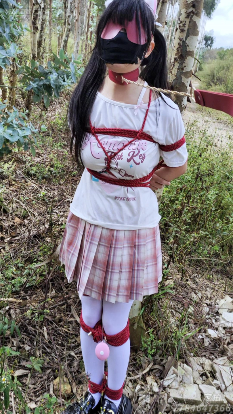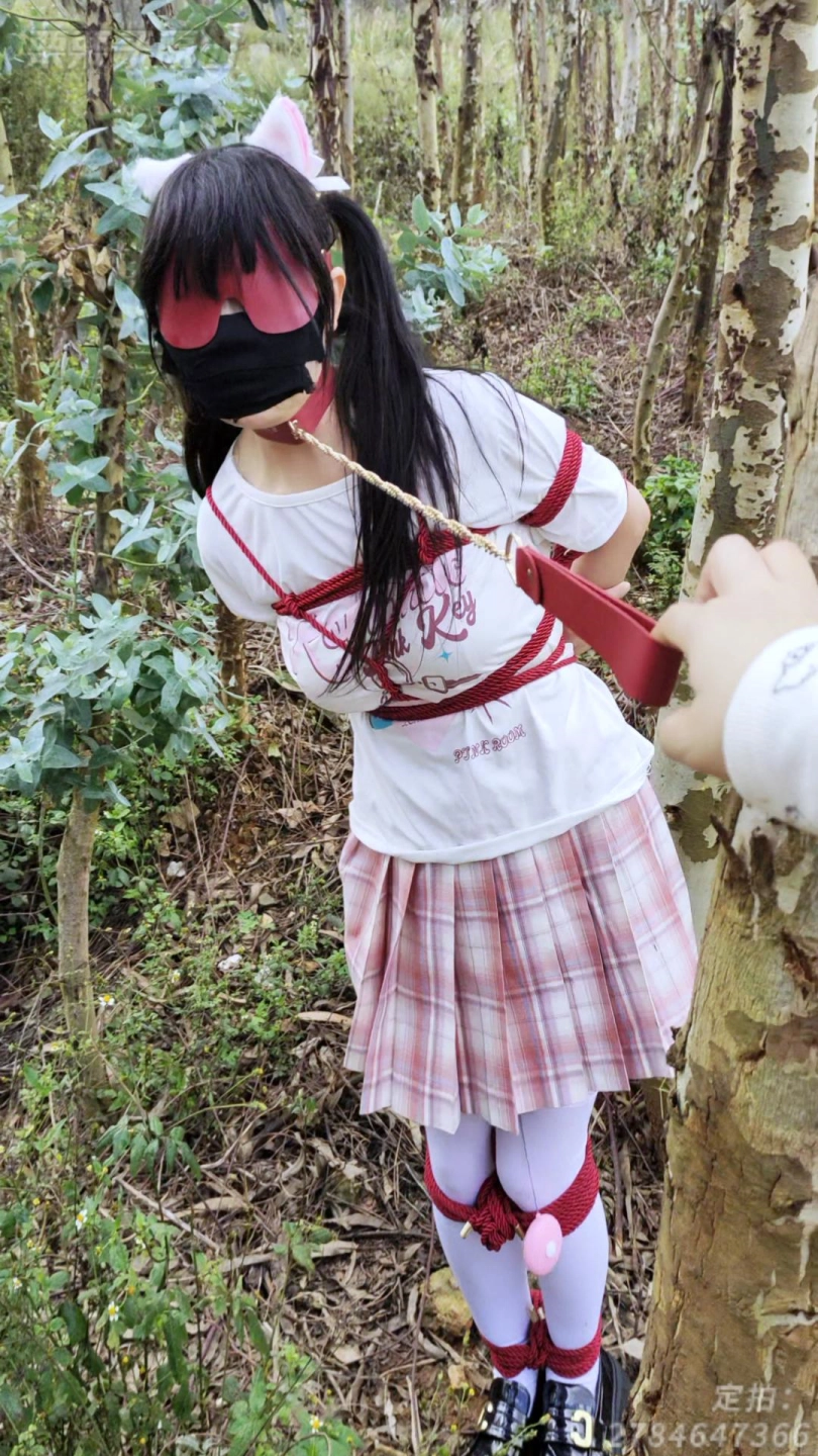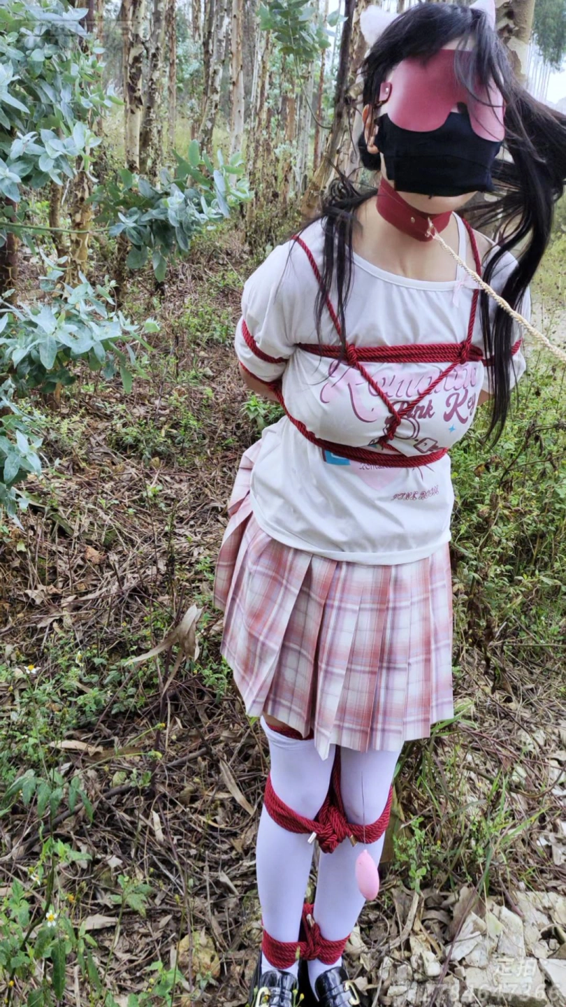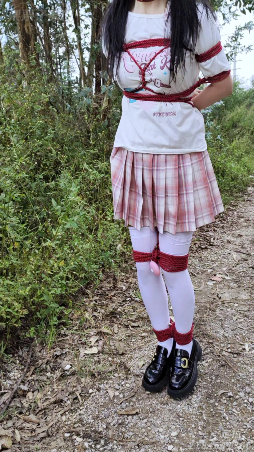 被控制的小M,被捆上双手和双腿,塞上快乐蛋带到小树林,让她在被快乐蛋折磨到腿软,随时都会被发现的风险下,让小M不停跳跳跳,让她求饶……