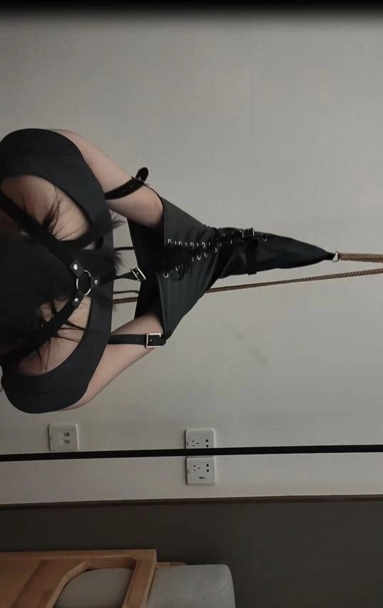 第一幕 珂珂被拘束带吊在衣架上,双腿吊在衣架上面 丝腿摩擦脱出不能