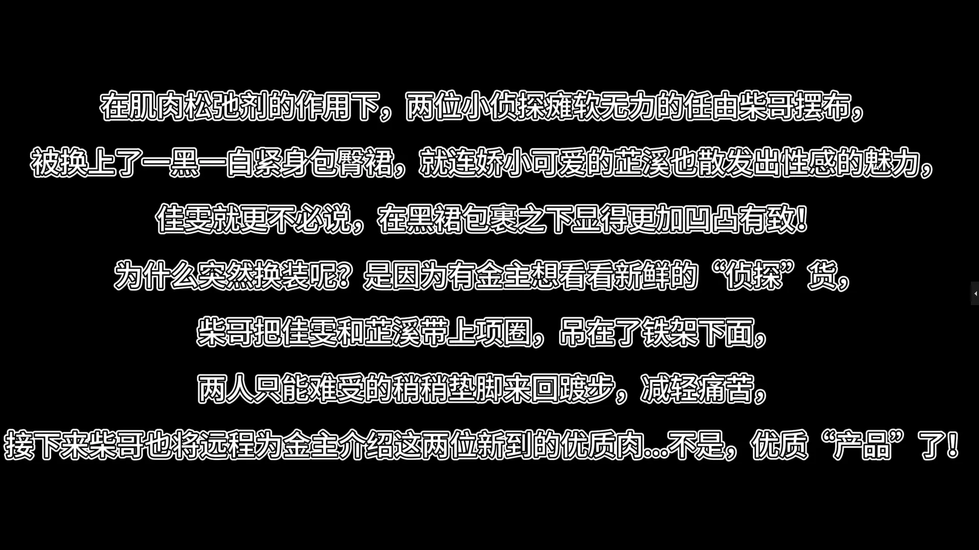 【视频时长】:00:30:10 【文件大小】:2112.69 MB 在肌肉松弛剂的作用下,两位小侦探瘫软无力的任由柴哥摆布, 被换上了一黑一白紧身包臀裙,就连娇小可爱的芷溪也散发出性感的魅力, 佳雯就更不必说,在黑裙包裹之下显得更加凹凸有致! 为什么突然换装呢?是因为有金主想看看新鲜的“侦探”货, 柴哥把佳雯和芷溪带上项圈,吊在了铁架下面, 两人只能难受的稍稍垫脚来回踱步,减轻痛苦, 接下来柴哥也将远程为金主介绍这两位新到的优质肉...不是,优质“产品”了! 佳雯和芷溪被柴哥的秘密小玩具不断冲击着...她们努力的克制着不让自己 显得狼狈,但是扭动的身体,迷离的眼神,娇柔的呻吟都预示着她们快要顶不住了... 柴哥远程介绍让金主相当满意,爽快打了定金, 看着气喘嘘嘘,虚弱不已的两位小侦探,柴哥宣布了她们往后的归宿, 而芷溪和佳雯连生气呜呜的力气都没有了,如果她们在调查之前提前和局里沟通, 是不是不会出现现在的情况,还能抓到坏蛋呢? 不过没有如果,她们之后只能以“侦探失踪案”的资料内容, 出现在某位即将提前结束休假的搜查官手里... 枫叶芷溪饰演侦探芷溪 枫叶佳雯饰演侦探佳雯 本集近距离特写展示的桥段,个人觉得拍得非常好,很有身历其境的感觉! 两位模特和男演的互动很默契! ![]() ![]() ![]() ![]() ![]() ![]() ![]() ![]() ![]() ![]() ![]() ![]() ![]() ![]() ![]() ![]() ![]() ![]() ![]() ![]() ![]() ![]() ![]() ![]() ![]() ![]() ![]() ![]() ![]() ![]()