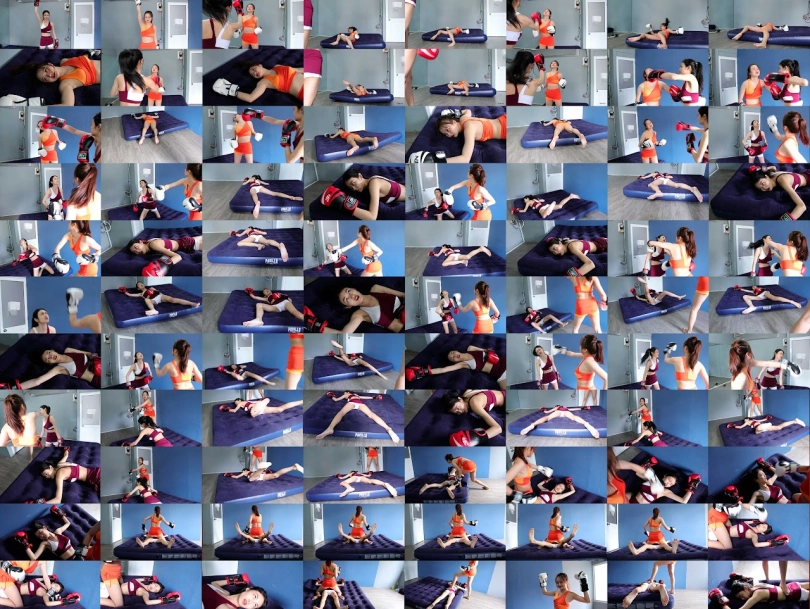 Elsa (Brown) vs Helen (Orange) fights each other in a boxing match. Whoever scores 3 knockouts first will win. Elsa gets the first 2 KOs but Helen makes a comeback. Elsa after getting 2 devastating KOs from Helen has lost a lot of stamina and she easily is beaten by Helen. Helen wins but she is not letting Elsa get away that easily. Helen starts the beating on the poor Elsa`s lifeless body and humiliates her with a dominant victory pose. This video has more than 5 KOs + slow motion KOs + Eye Rollings. Resolution:1920×1080,fps:50 Duration:10m15s ![]() ![]()
