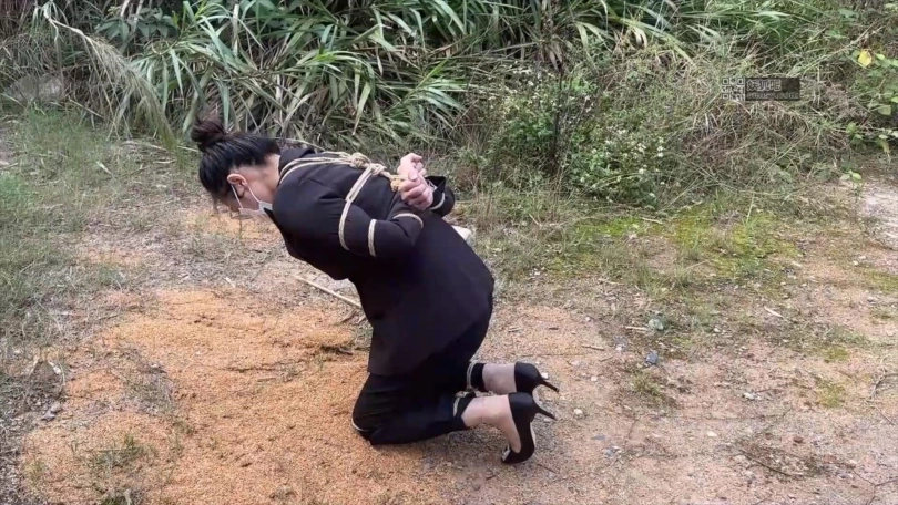 女囚洋上线,同好定拍执行死刑,五花大绑+绊脚绳,户外押解,户外执行
